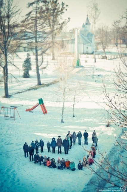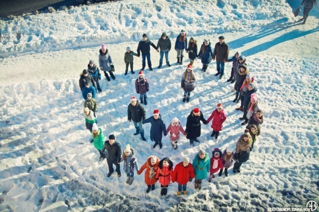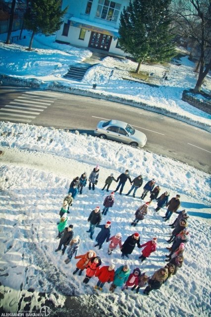 Новорічний флешмоб: серце і смайлик з людських тіл. ФОТО