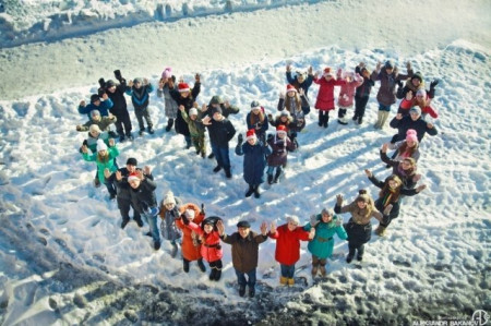 Новорічний флешмоб: серце і смайлик з людських тіл. ФОТО