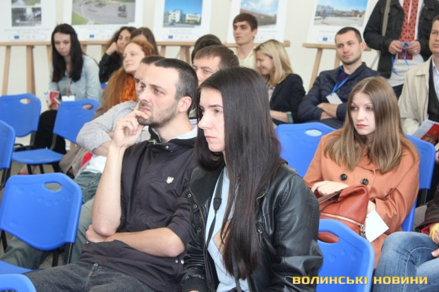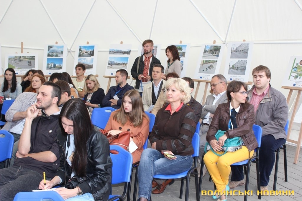 Його територія – це площа великого білого павільйону на Театральному майдані. Сьогодні вже о 10:00 в ньому зібралися дизайнери, архітектори, активісти та просто небайдужі до проблеми облаштування громадського простору лучани. Вони слухали лекції запрошених експертів у цій галузі під загальною назвою «Місто в мініатюрі» та самі долучалися до обговорення теми.