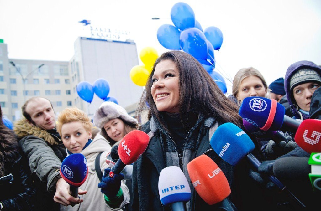 у той час коли на сцену євромайдану не впускали громадських представників... на сцені були дикі танці-------руслана бичка за мирну акцію. у нас як із тією юлею в голові опілки. йде штурм штабу вона скаче і кричить у нас мирна акція. не провокуйте міліцію. а там зламані ноги і руки. поламанні 70 % барикад. у неї мирна акція. була у парламенті і одягалась так щоб її бачили. їй не революція потрібна а щоб її бачили і любили. прибацана на всю башню. за допомогою такого 4ма і розавалювало Євромайдан.