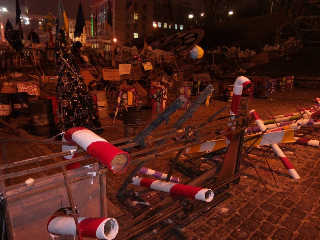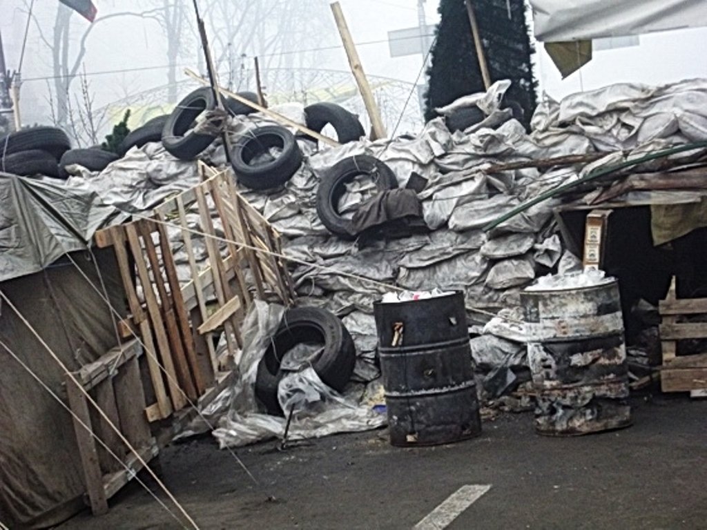 Сонно, туманно, холодно. Барикади. Враження, що над ними попрацював якийсь креативний дизайнер. Люди фотографуються на імпровізованому президентському кріслі, а під фото очільника держави на великому екрані - напис: «Актор, який ще не має Оскару».
