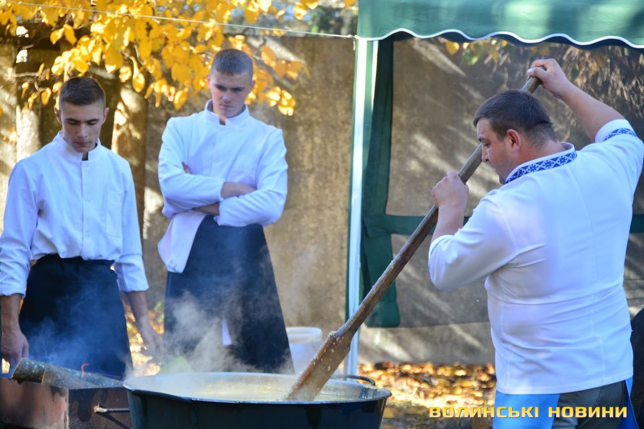 Окремі розваги чекали і на найменших гостей дійства – веселі конкурси та танці від аніматорів, а також казкових героїв, зібрали на стадіоні десятки дітлахів. Для всіх охочих працювали і майстри з боді-арту, які творили справжні шедеври фарбами та пензлями просто на шкірі.Неймовірно видовищним видався виступ учнів спортивного клубу «Герць», які демонстрували володіння бойовим мистецтвом. Ходіння по склу, розбивання молотом цегли на тілі та неймовірні акробатичні трюки не залишили байдужими нікого з присутніх.З цікавістю чекали гості свята на розіграш призів від Фонду Ігоря Палиці. Вже традиційно, кожен гість автоматично брав участь у розіграші – для цього було достатньо отримати браслет. Посуд, колонки Вluetooth, навушники, гаджети і сувеніри розіграли між присутніми гостями, переможців обирали серед учасників випадковим чином. А головний приз – новенький велосипед - виграла маленька Богдана Богданівна, яку привів на свято татусь.І, звичайно, яке ж козацьке свято без традиційної козацької страви – кулешу. Його для гостей дійства наготували стільки, що частували відразу в двох локаціях.Завершився святковий захід захопливим виступом духового оркестру 14 механізованої бригади Володимир-Волинської військової частини. Військових ще довго захоплені гості не відпускали зі сцени бурхливими оплесками та вигуками «молодці!».