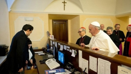 Новий Папа Римський й досі мешкає в номері-люкс готелю «Дім святої Марти» на території Ватикану. У п'ятницю в присутності Франциска опечатані на час «вакатного престолу» апартаменти у папському палаці відчинили. Однак в квартирі триває косметичний ремонт, який обіцяють закінчити до неділі. Цього дня Папа відслужить свою першу месу Angelus, що традиційно ведеться з вікна його робочого кабінету.