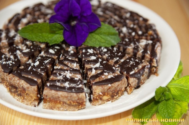 Для любителів солодощів тут теж є чим поласувати: десерти з горішків, фруктів, ягід, меду. До слова, у солодощах немає й грама цукру, вони багаті на вітаміни та інші корисні речовини.