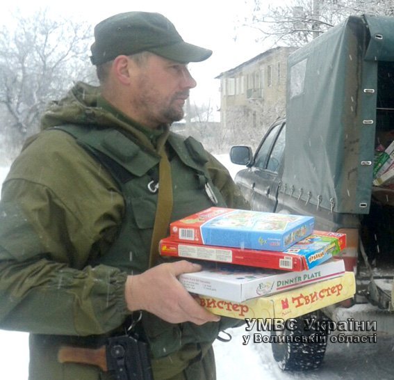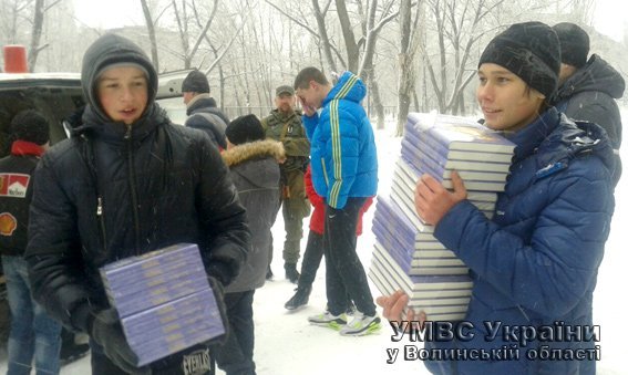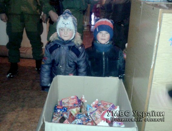 Бійці зі волонтерами навідалися у школи та дитячі садочки одного із міст на Донеччині із солодощами, книгами та розвиваючими іграми. Діти неабияк тішилися подарункам та найбільше вони дякували суворим бійцям за те, що вони стали на захист їхніх родин і помешкань. Фоторепортаж поїздки волинських бійців і волонтерів подають у прес-службі волинської міліції.