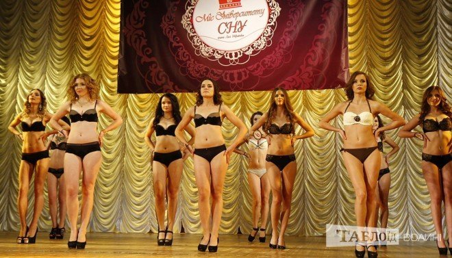 Купальників мабуть всім не вистачило, довелось в спідній білизні на сцену виходити
