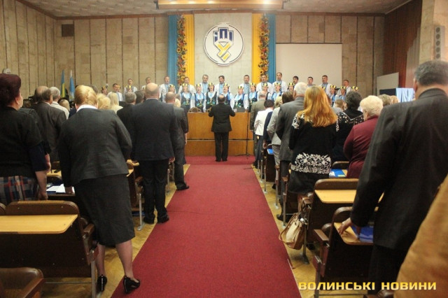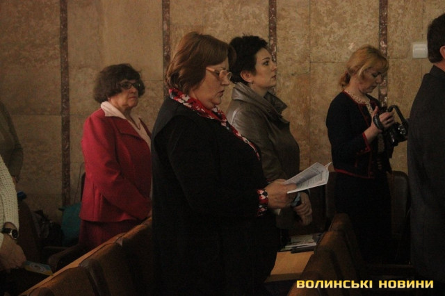 «Хай пам'ять невинно вбитих згуртує нас живих», - пролунало з трибуни.Ці слова підкріпило тужливе «Пливе кача» у виконанні тієї ж таки «Освітянки».Після закінчення ліричних моментів присутні обрали робочу президію, а також лічильну, статутну, редакційну комісію та секретаріат.Перед тим, як приступити до виборів безпосередньо, учасники конференції заслухали звіт тимчасового виконувача обов’язків Голови Федерації профспілок Волинської області Василя Грановського.