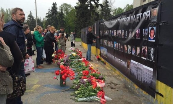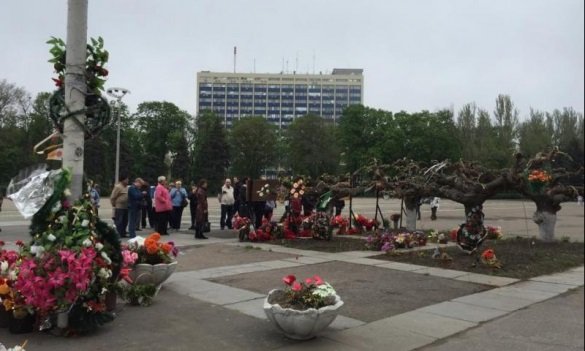 "Близько 11:00 до Будинку профспілок прийшли близько сотні активістів Куликового поля і завісили паркан, пофарбований у кольори українського прапора, чорною тканиною. Потім на паркан повісили великий банер з портретами загиблих на Куликовому полі", - йдеться в повідомленні.