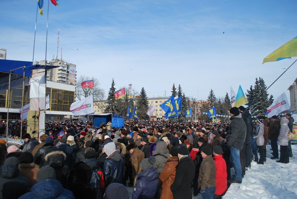 Люди в мороз не полишають пост біля воріт частини внутрішніх військ на вулиці Лідавська в Луцьку. Активісти просять про підмогу, стало відомо під час народного віче сьогодні, 26 січня.