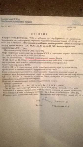 Сьогодні трагедія не оминула і її домівку - важко захворіла мама Людочки - Кіндер Тетяна Дмитрівна. Діагноз страшний - "злоякісна пухлина прямої кишки ІІ ступінь", до всього мама має вроджений порок серця та страшну алергію (на медикаменти, пил, продукти харчування). Вже пройдено певний шлях лікування та все ж таки операція необхідна і терміново! Лікар в Боголюбах береться за її проведення! Необхідна сума на операцію - 30 000 гривень. Операція вже запланована на 1-2 червня 2016року.