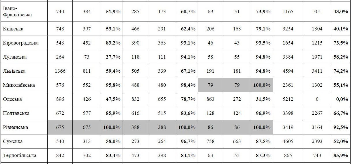 Рівненська область першою серед інших регіонів забезпечила підключення опалення всім 100% закладів соціальної сфери. Лідирує область і в подачі теплоносія житловому фонду – 92,5%. Житомирська та Миколаївська області повністю вже забезпечили опаленням лікувально-профілактичні заклади. Подача теплоносія школам та дошкільним навчальним закладам на Житомирщині складає 93,2 та 95,2% відповідно; на Миколаївщині – 95,8% та 98,4 відповідно.