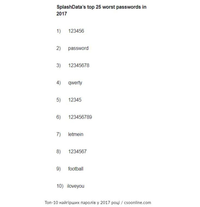 Оприлюднили рейтинг найбільш ненадійних паролів 2017 року