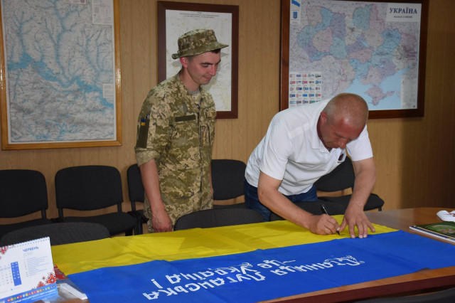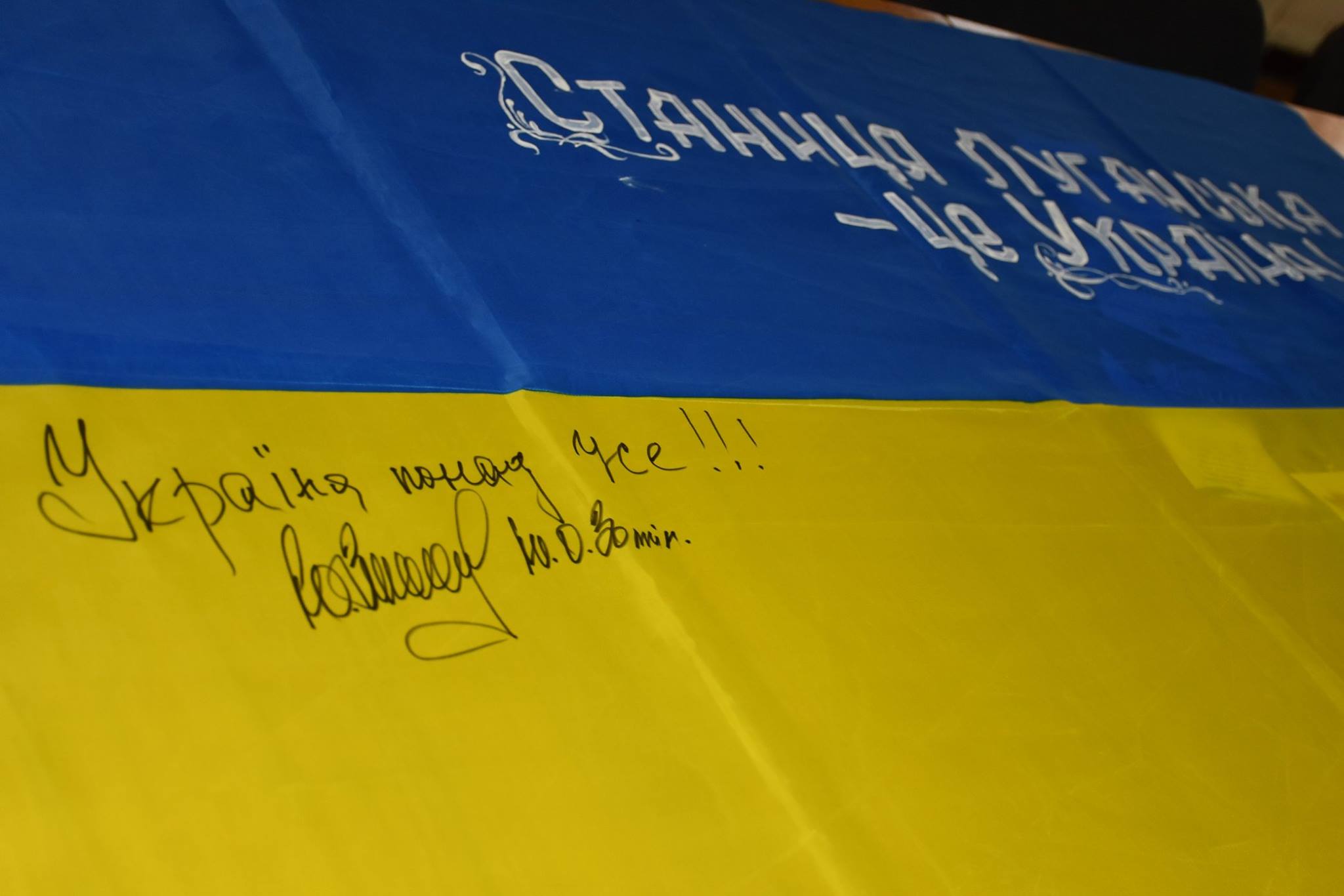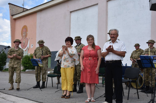 Голова районної державної адміністрації Станиці Луганської Юрій Золкін подякував військовим музикантам за концерт, а всім воїнам нашої бригади – за мир та спокій, який вони бережуть у багатостраждальному місті, за надійний захист. На знак подяки та шани Юрій Золкін вручив керівнику оркестру Ярославу Королю український прапор з надписом «Станиця Луганська – це Україна», а згодом написав на ньому щирі побажання.