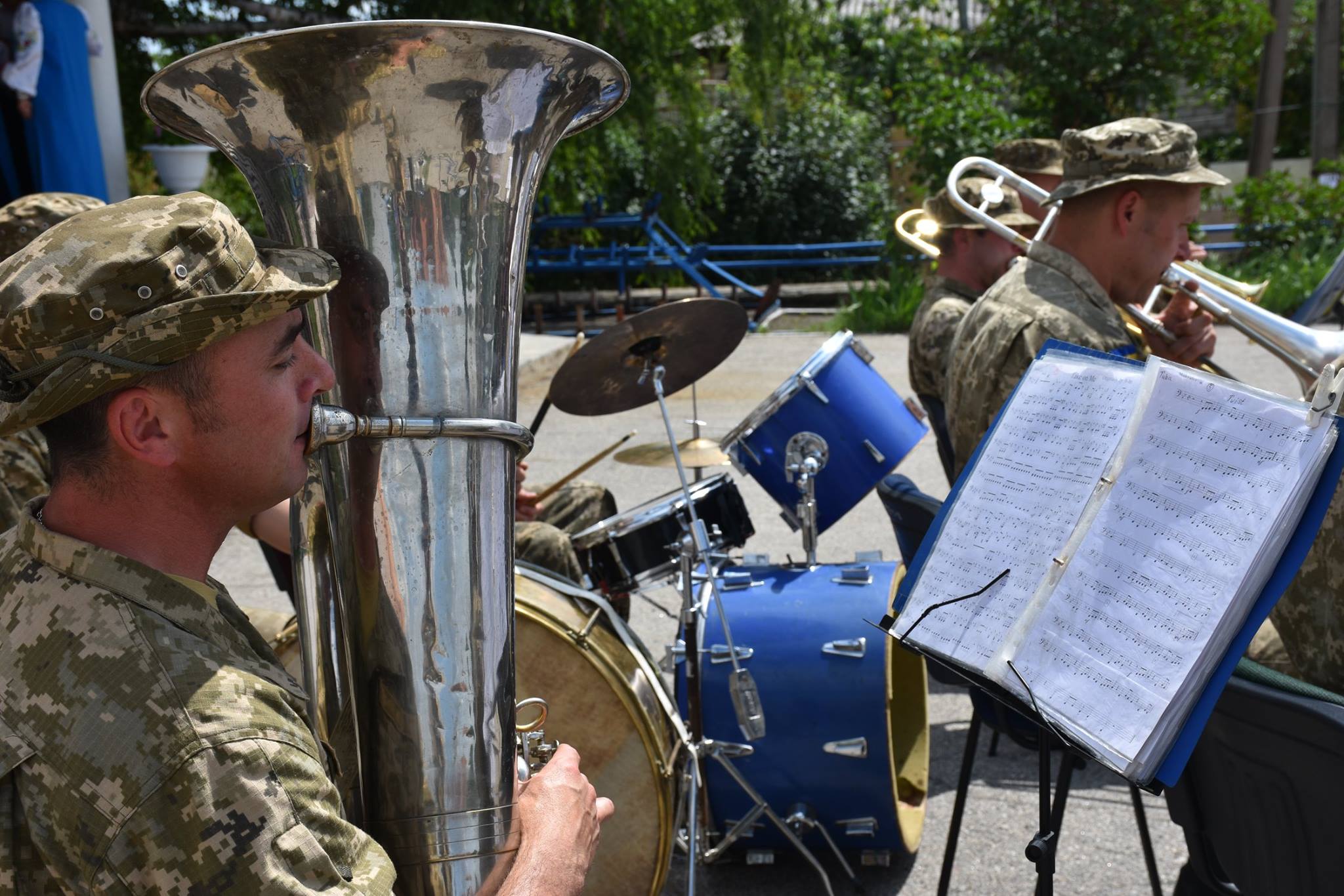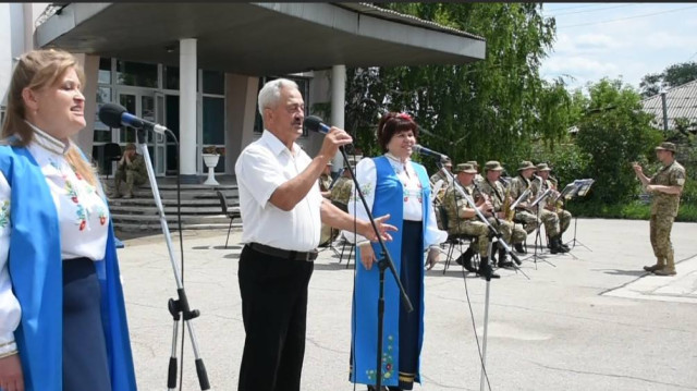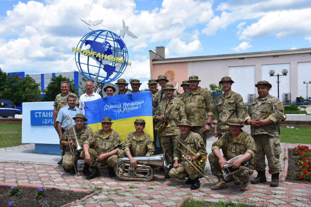 Найбільш же видовищним став концерт нашого оркестру на центральній площі Станиці Луганської, де до військових музикантів приєдналися солісти місцевого ансамблю «Слов’янський луг». Разом вони співали українські пісні, а на завершення спільно з глядачами, надзвичайно урочисто, виконали гімн України», - йдеться у дописі.