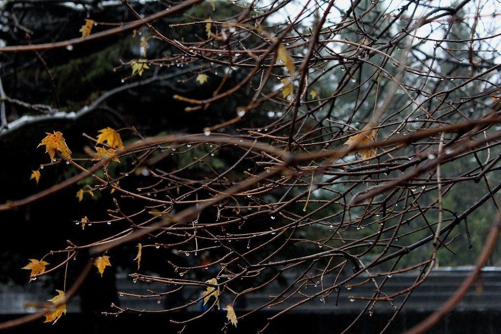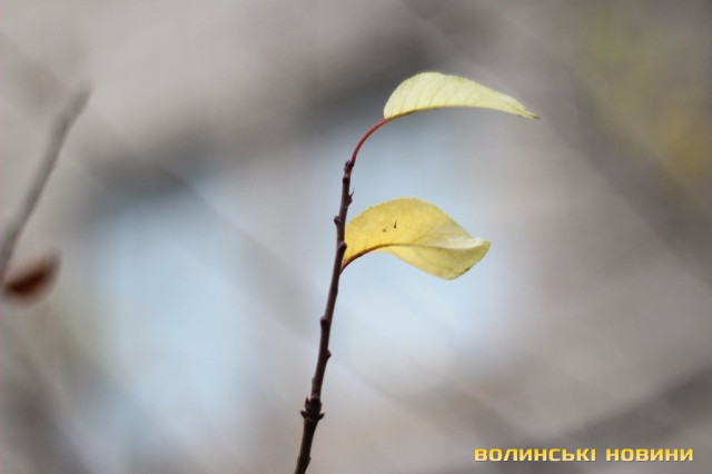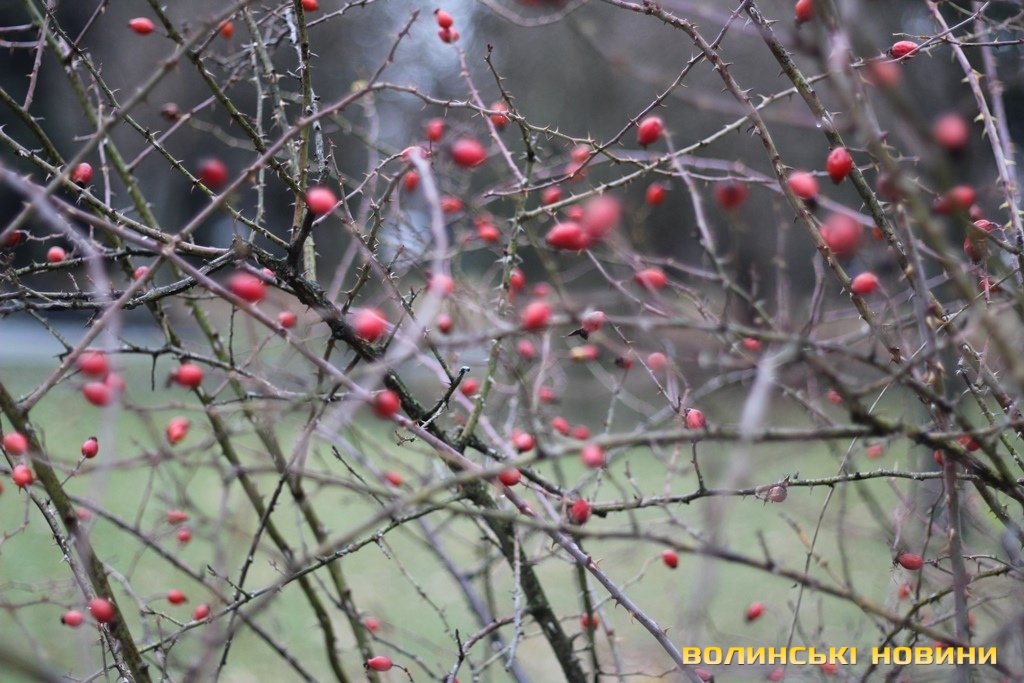 Не встигли лучани вдосталь наліпити сніговиків, як на зміну несміливому зимовому снігу прийшли дощі. Хлюпочать калюжі під ногами, а замість білосніжного покривала на мокрому асфальті дрібними краплинками виблискує буре осіннє листя. Червоніють останні ягідки шипшини, які залишаються міцно триматись на гілочках. На кінчиках гілок деяких дерев та кущів вряди-годи можна зустріти малі листочки. Здається, примхлива природа вкотре переплутала пори року – плаксивий листопад із сніжним груднем.
