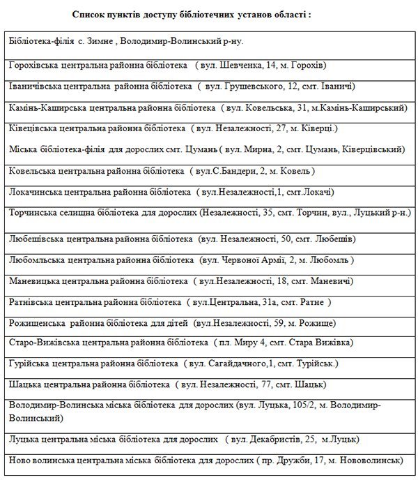 Крім цього, жителі віддалених громад області зможуть через пункти доступу бібліотечних установ ( список , дод. № 1) звернутися за правовою допомогою з цих питань до громадської приймальні Головного управління юстиції , щовівторка, з 15.00 до 17.00, та в режимі Skype зв’язку отримати консультацію.