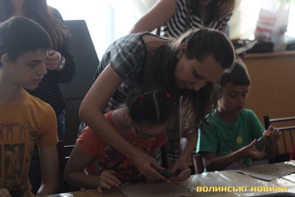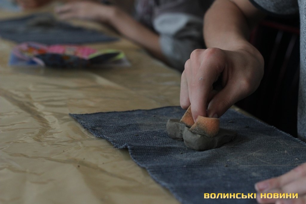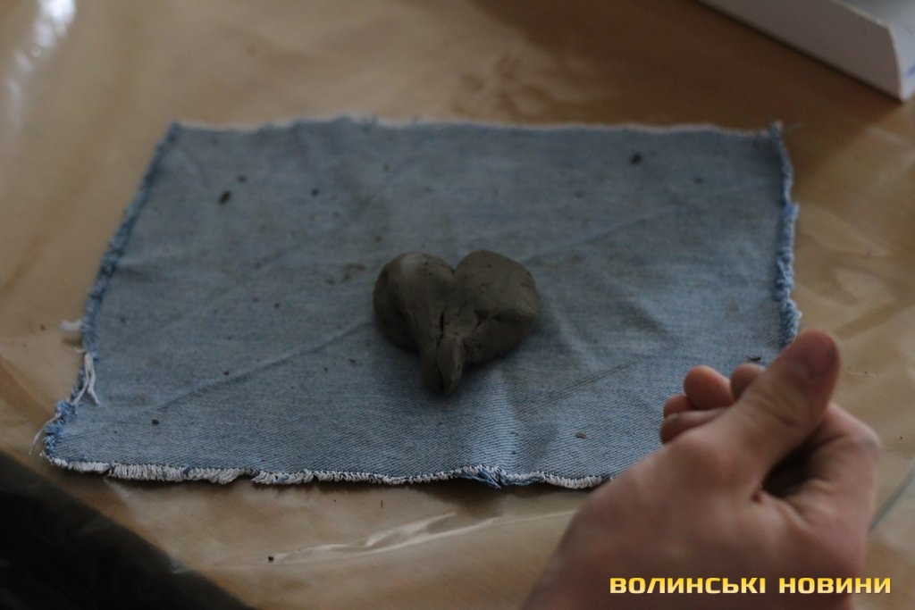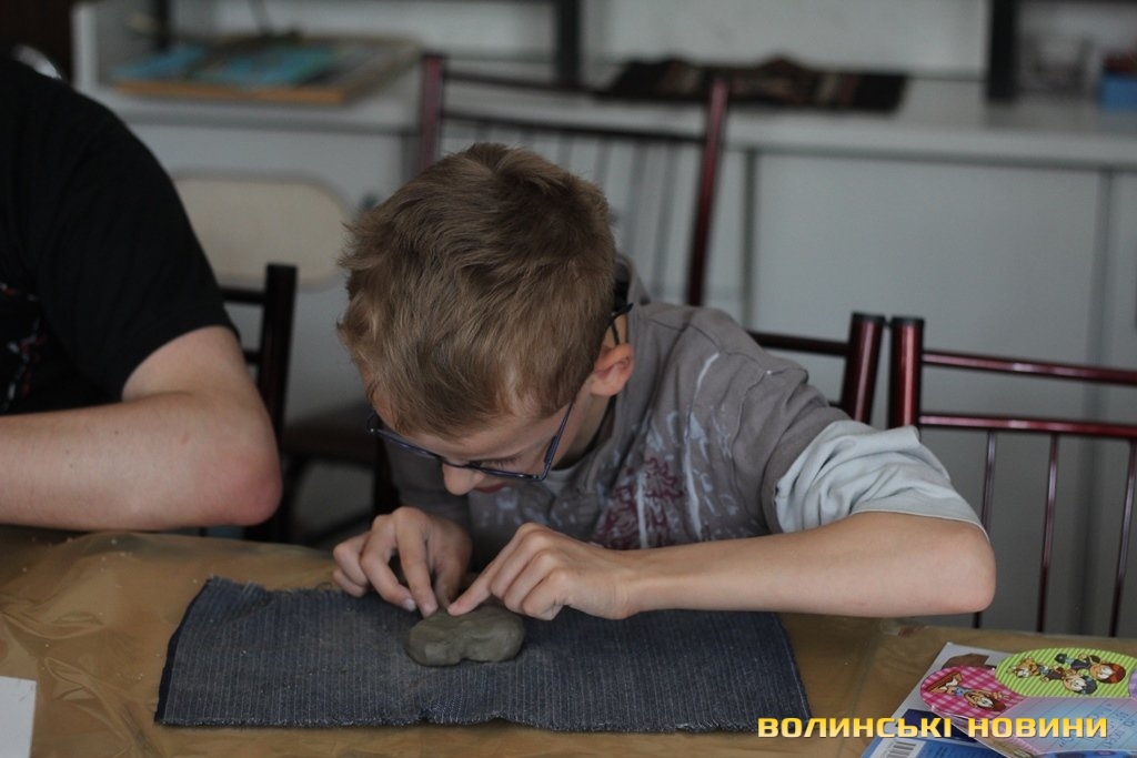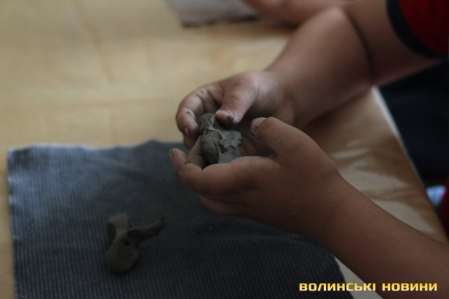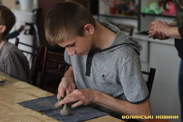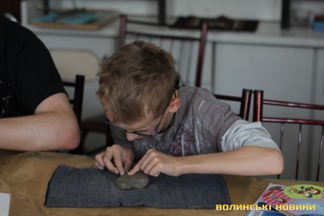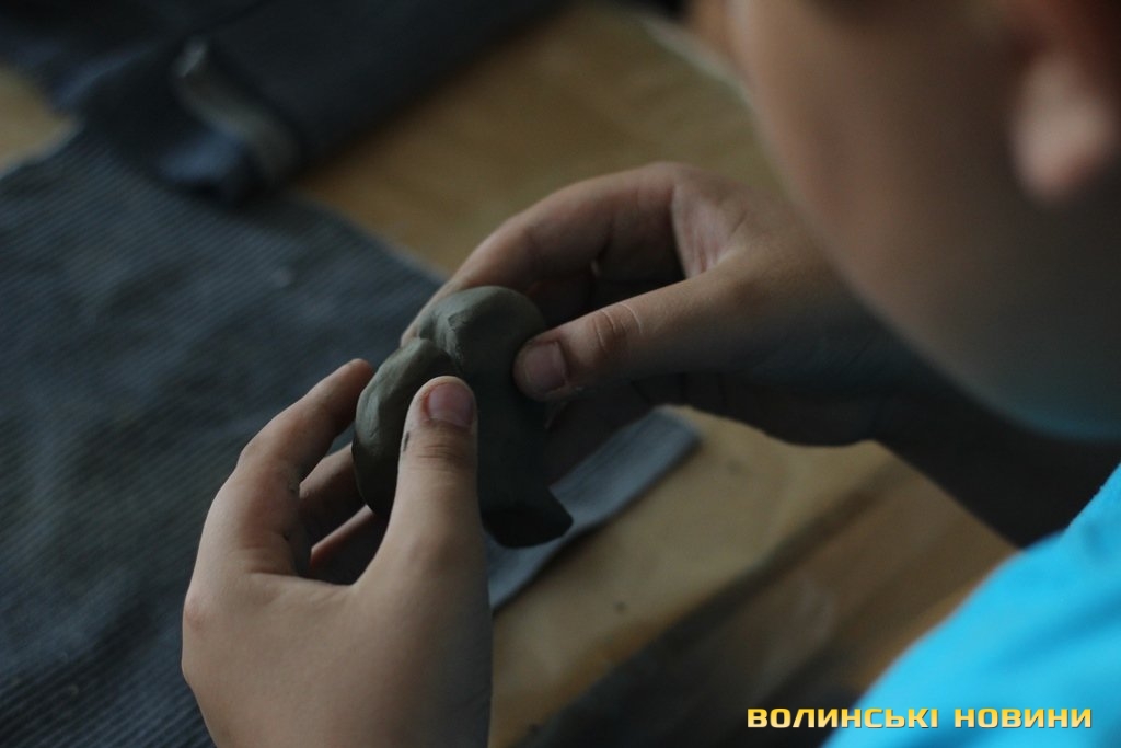Дітлахам вручили запрошення на перший урок, а також невеликі подарунки – фігурки для складання і розмальовки. Першим завданням для особливих митців стало ліплення сердечка. Не дивлячись на те, що для більшості дітей такий досвід був першим, всі вони чудово впорались із завданням.Олександр Жаловага зауважив, що після безпосередньо ліпнини, вироби мають підсохнути. Далі їх обпалять у спеціальній, муфельній печі.