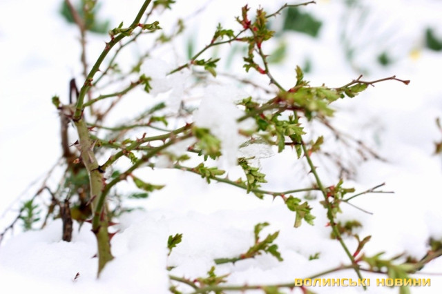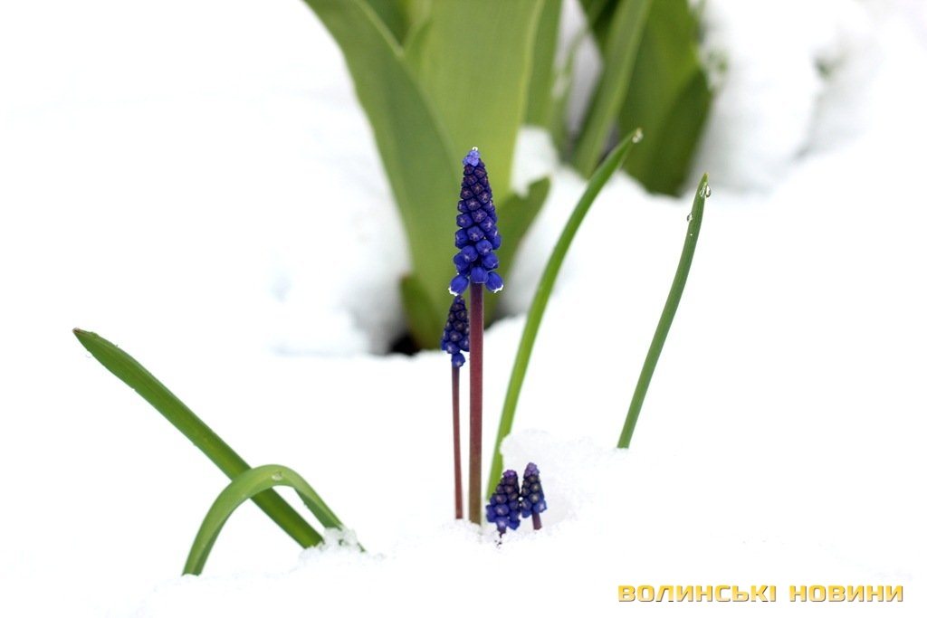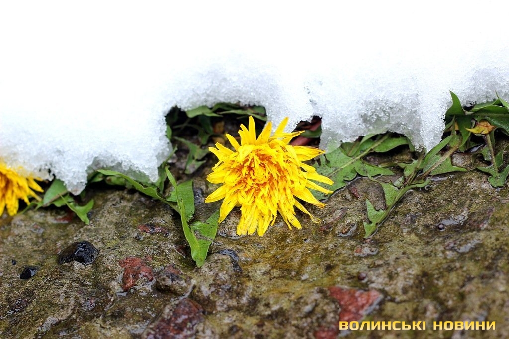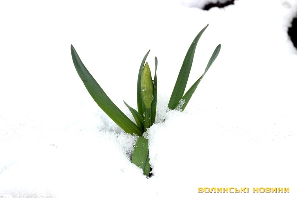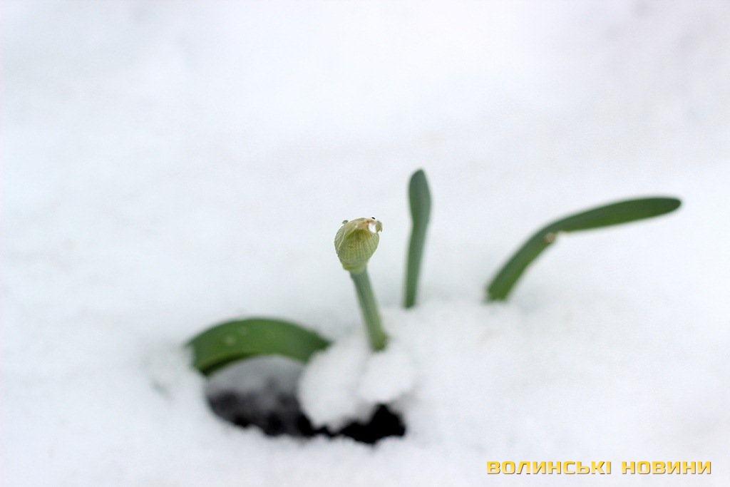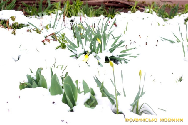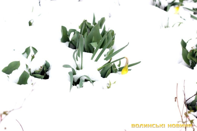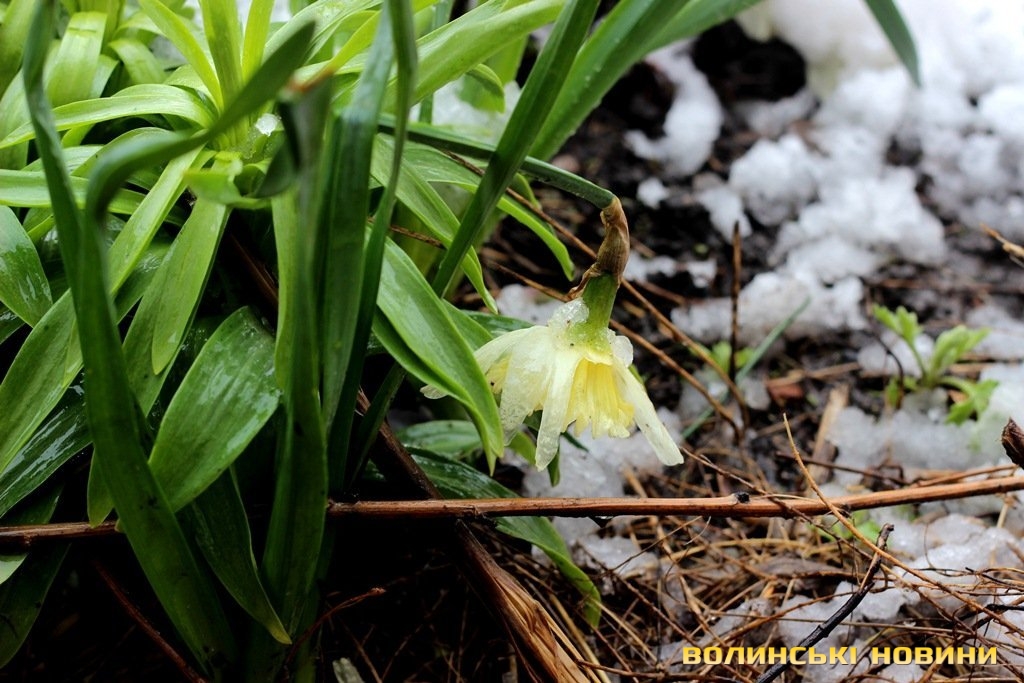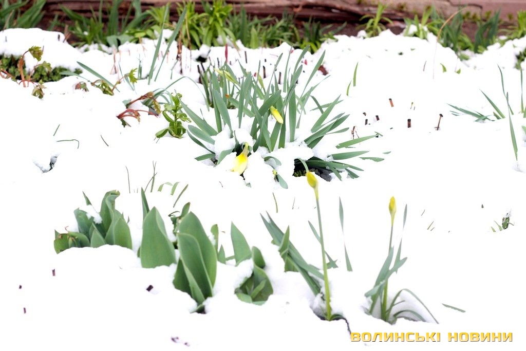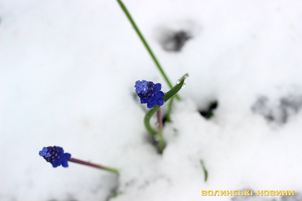Останні акорди зими у Луцьку. Весняні квіти під снігом