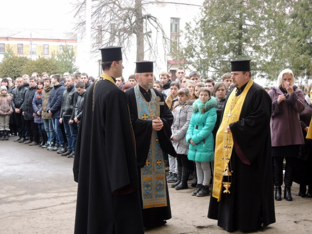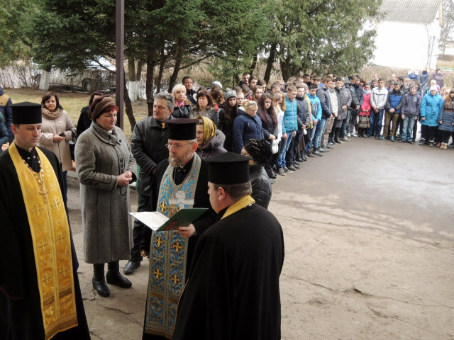 Так ушанували випускників Нововолинського вищого професійного училища, які віддали життя за Україну в зоні АТО. 25 лютого декан протоієрей Стефан Фульмес очолив панахиду й освячення меморіальних знаків.