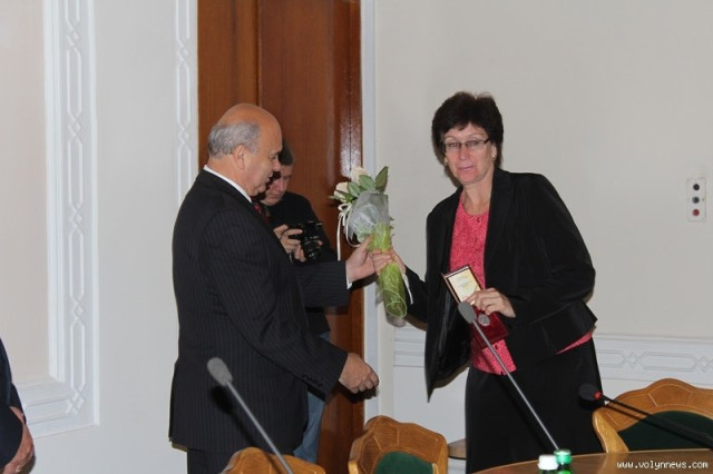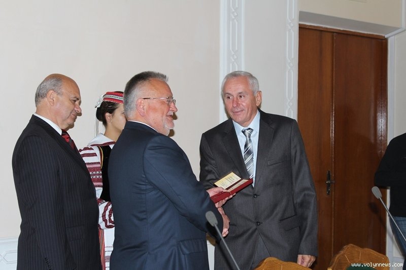 Не залишився без нагороди і волинський губернатор. Подякувавши Борису Клімчуку, Валентин Вірковський вручив Борису Клімчуку відзнаку за заслуги перед закладом від імені колективу.