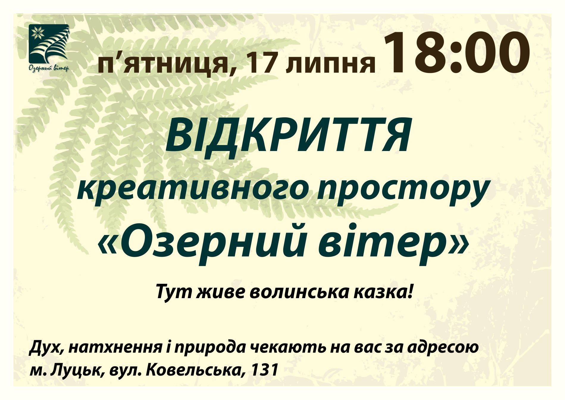 «Озерний вітер» у Луцьку запрошує на відкриття