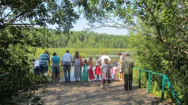 учасники шорічного поетичного свята «Лісова пісня», яке проходило 2 серпня в урочищі Нечимне, споглядають на озеро.