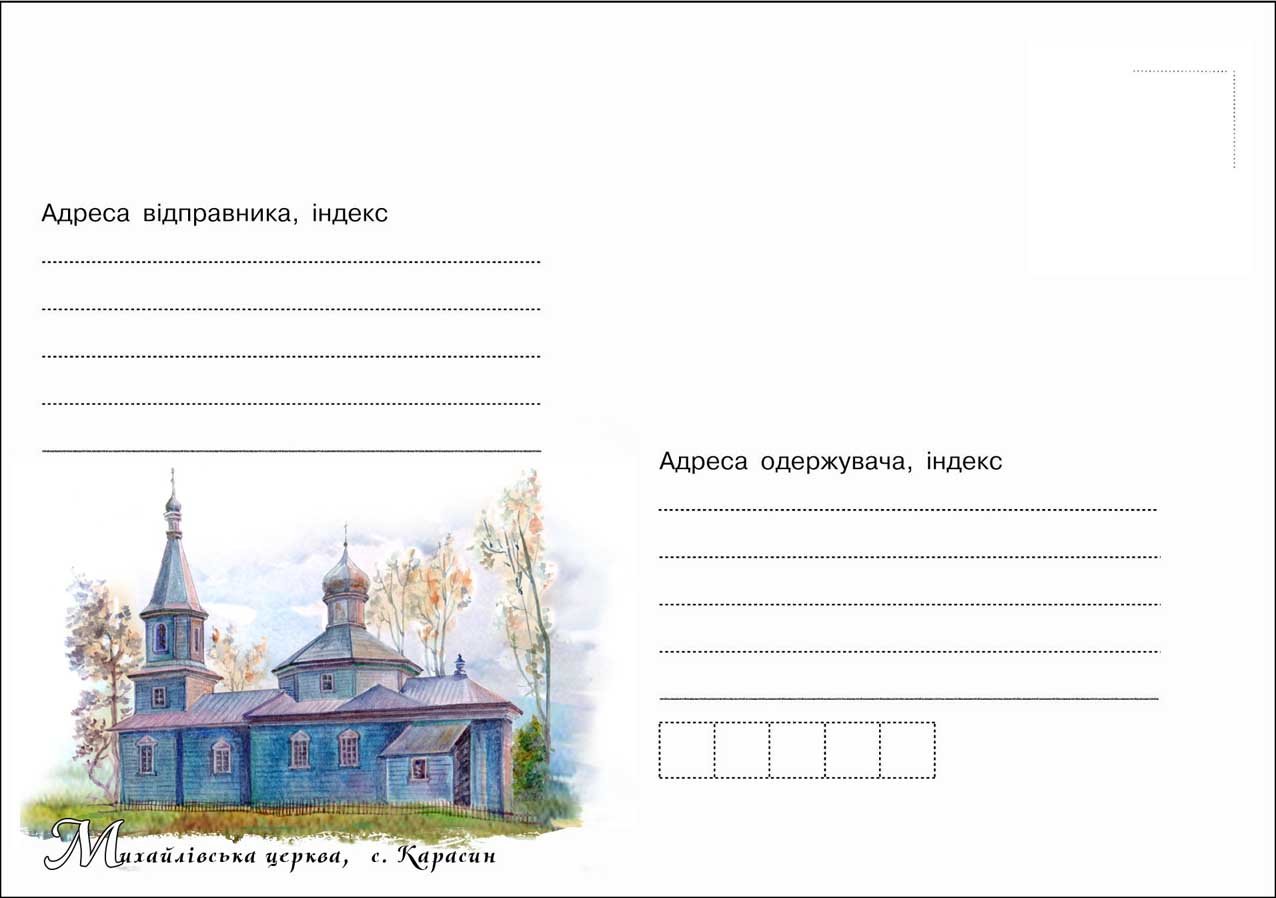 У поштових відділеннях з’явились конверти, на яких зображений Свято-Михайлівський храм села Карасин Маневицького району – пам’ятка архітектури національного значення.