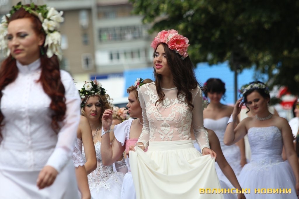 Майже три десятки учасниць традиційного щорічного параду наречених у Луцьку позмагалися за звання Нареченої Волині 2015. В образах наречених був присутній обов’язковий елемент – віночок, що символізує єдність. Не обійшлося й без символів сучасності – захисних кольорів весільної сукні.