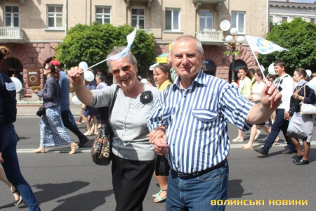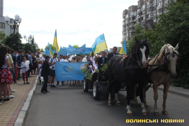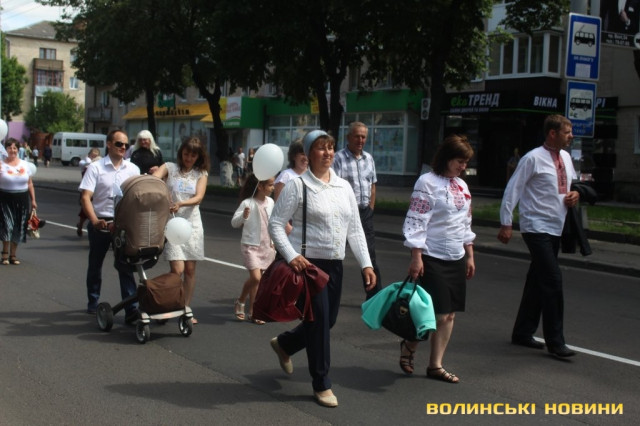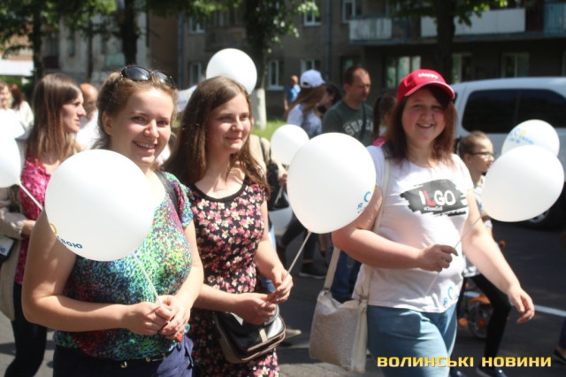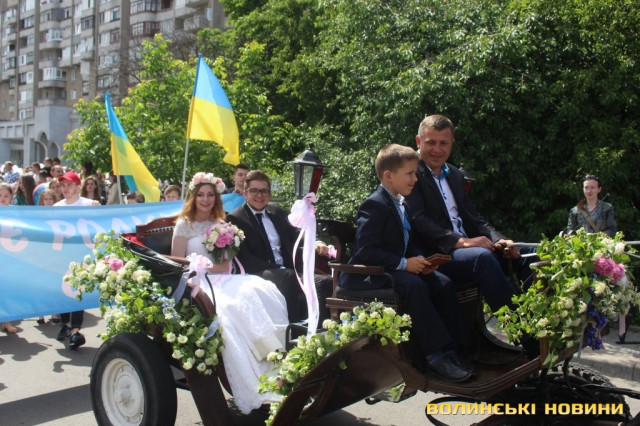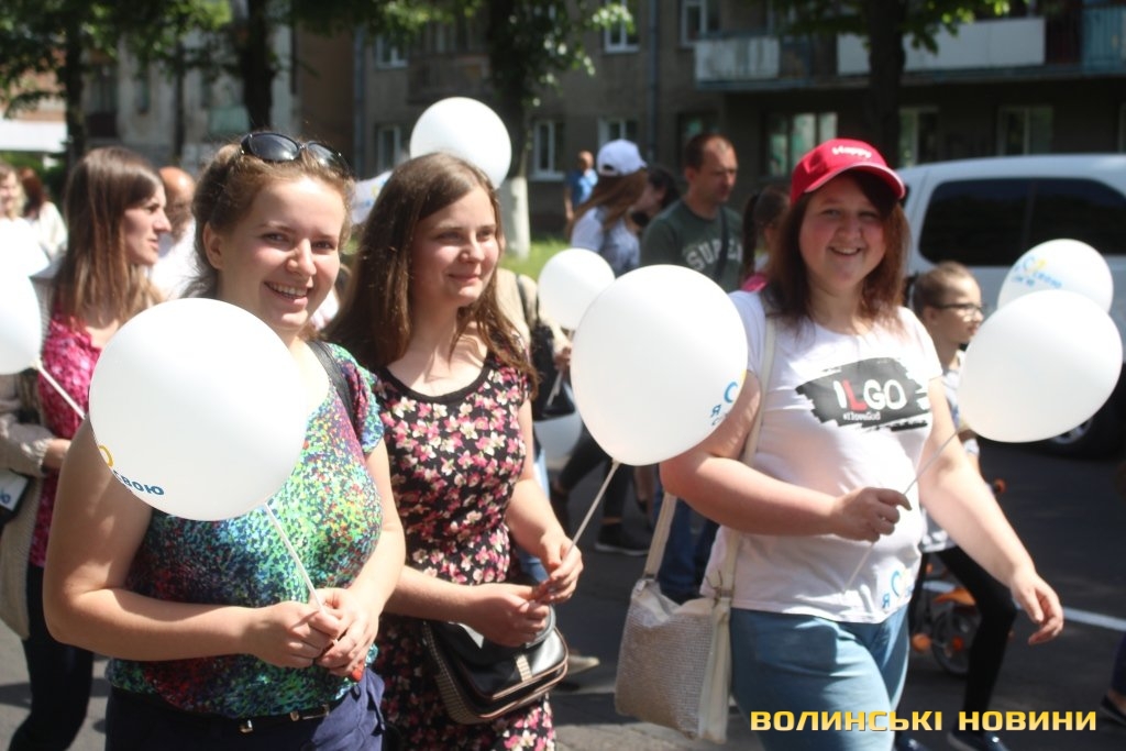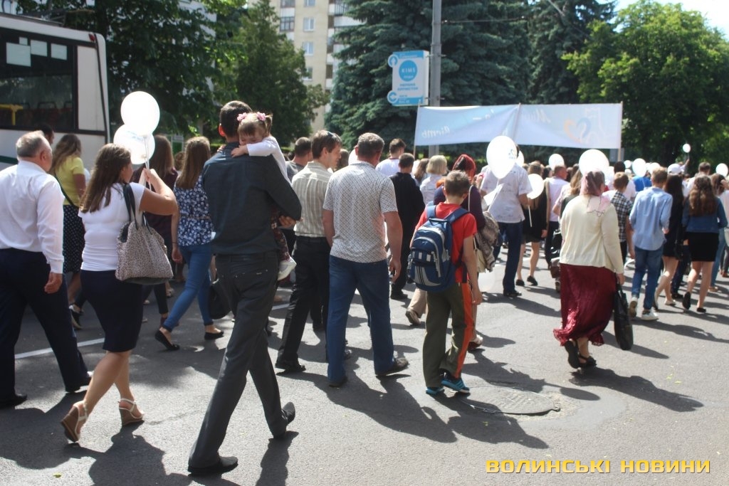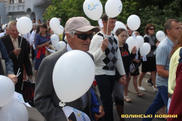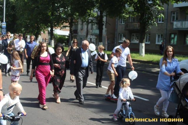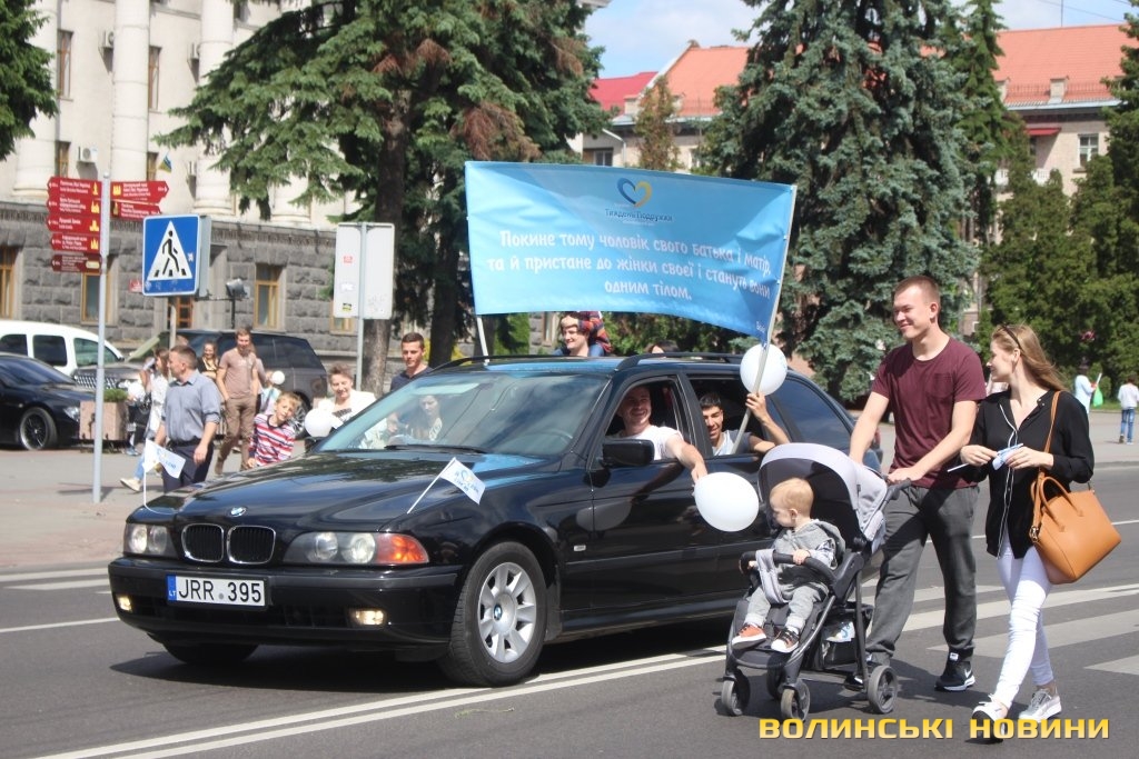 Відкривала ходу карета з молодятами, а за ними йшли цілими родинами лучани, які несли транспаранти, прапорці, повітряні кульки з написами «Я люблю свою сім’ю», замикав дійство оркестр.