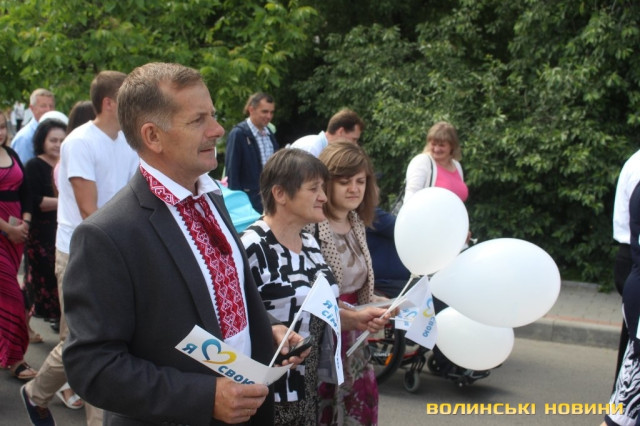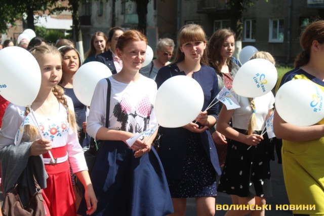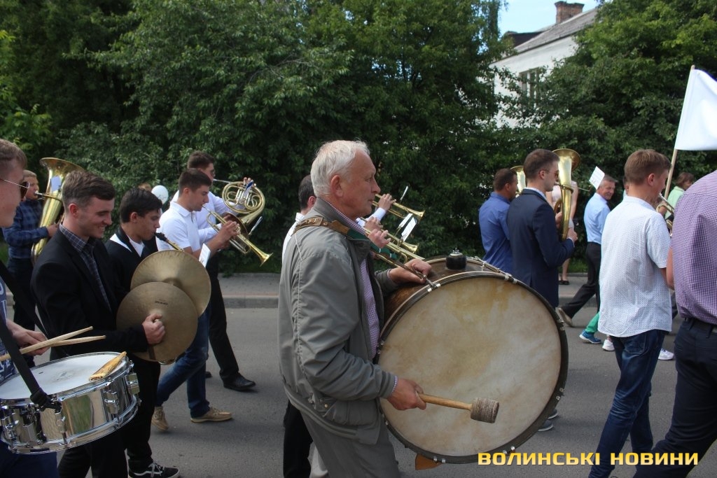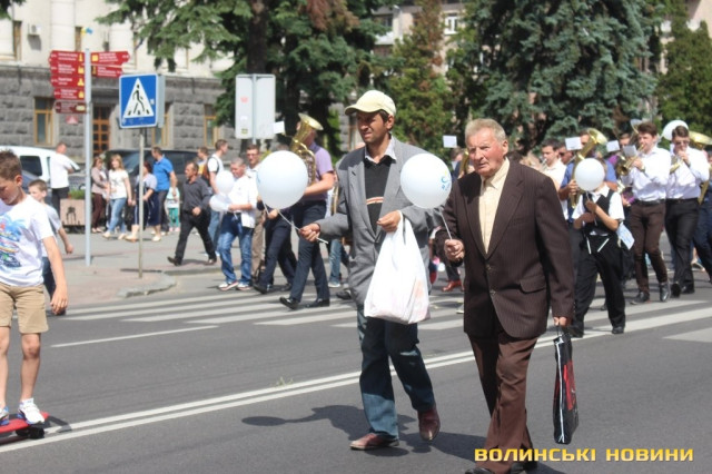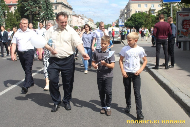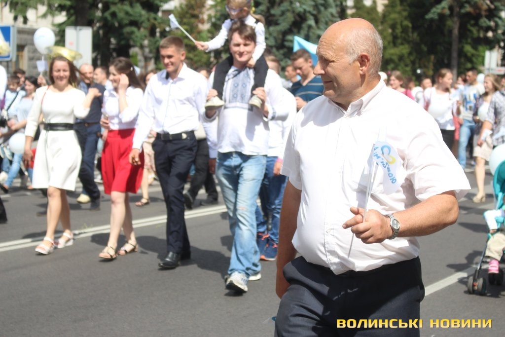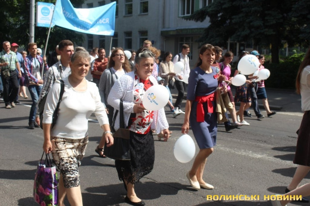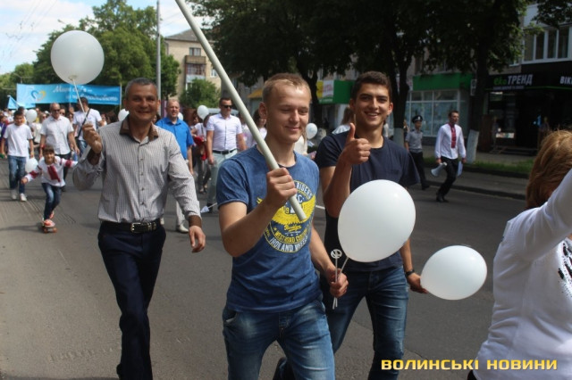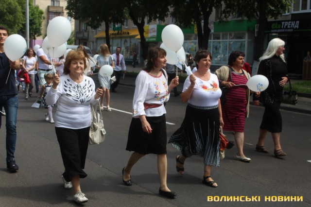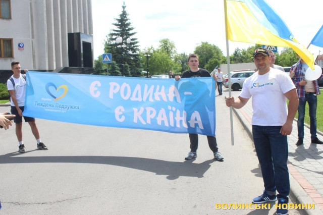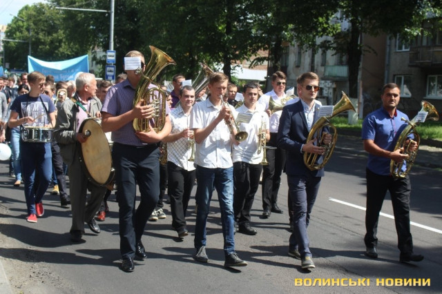Відкривала ходу карета з молодятами, а за ними йшли цілими родинами лучани, які несли транспаранти, прапорці, повітряні кульки з написами «Я люблю свою сім’ю», замикав дійство оркестр.