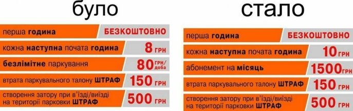 Перша година парковки й надалі залишається безкоштовною. Вартість кожної наступної початої години становитиме 10 гривень. Абонемент на місяць – 1500 гривень.