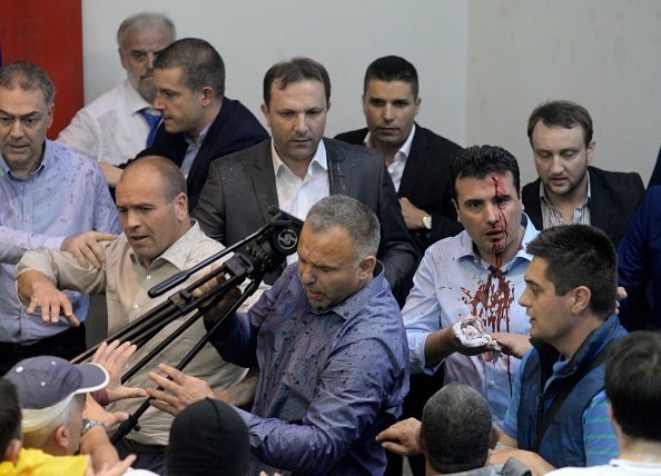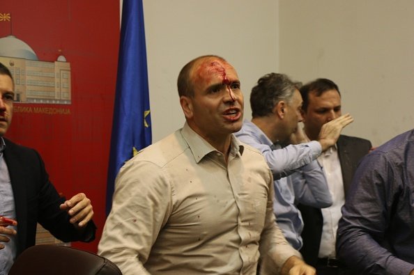 Наголошується, що лідер соціал-демократів Зоран Заєв був поранений під час штурму парламенту.