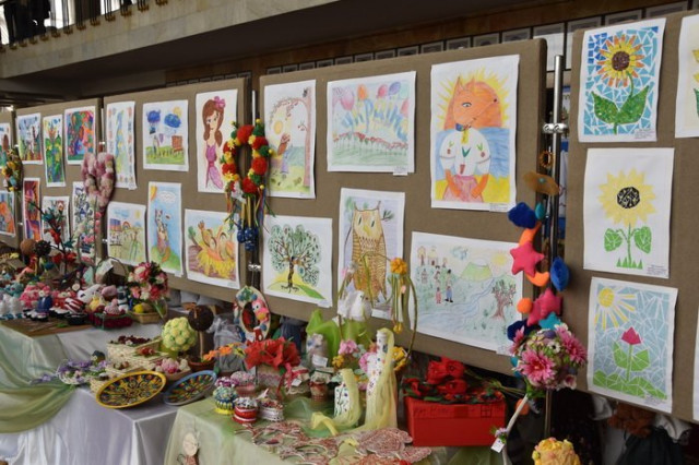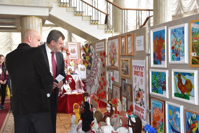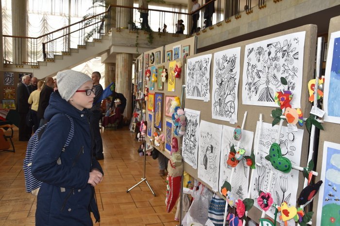 У фойє театру діяла виставка творчих робіт учнів шкіл, де були представлені різноманітні цікаві роботи юних лучан.