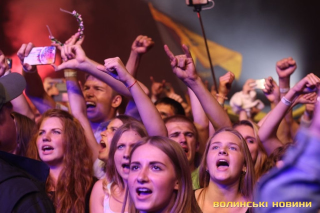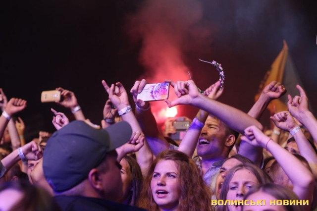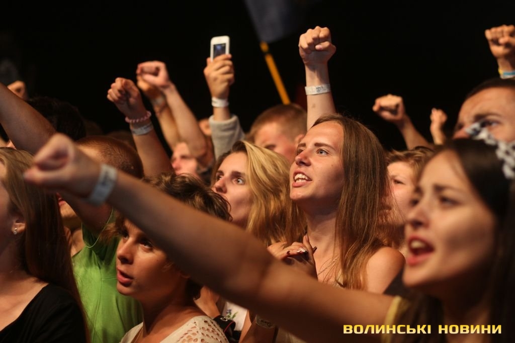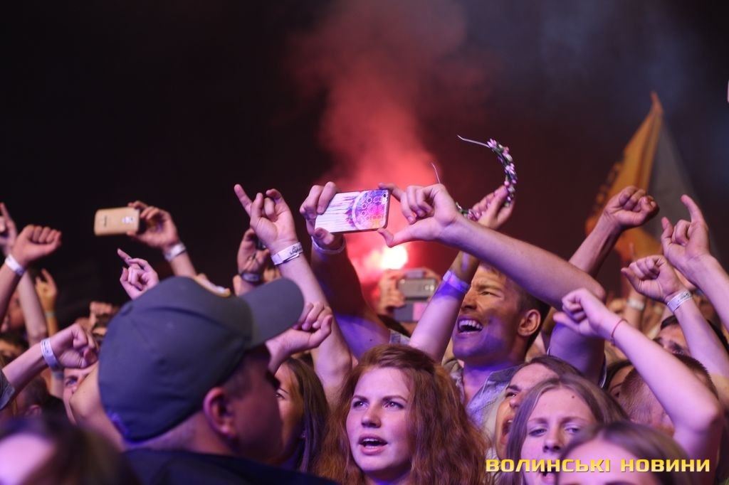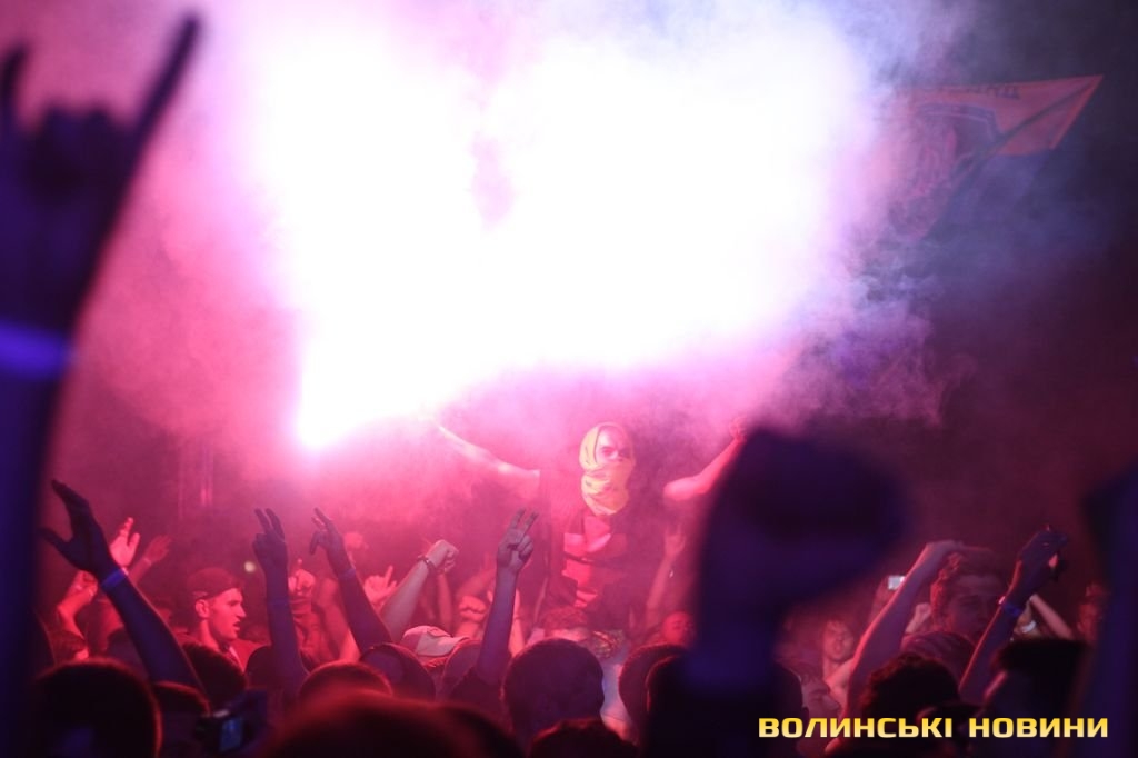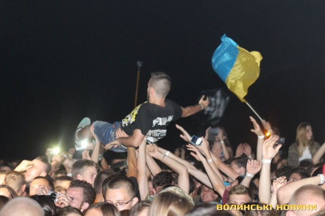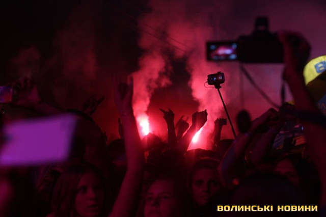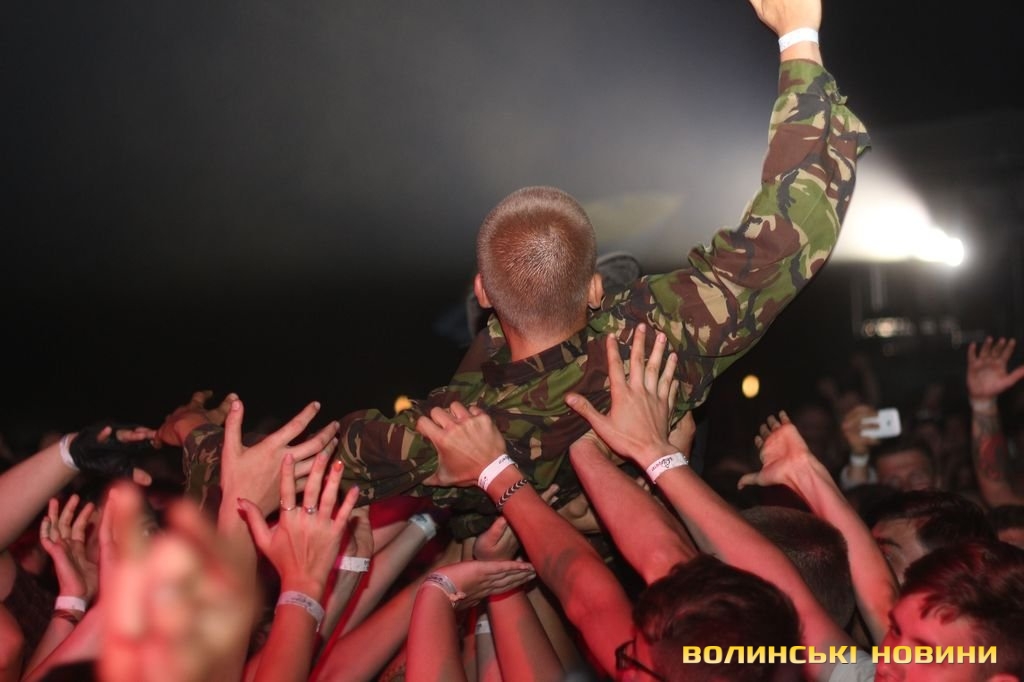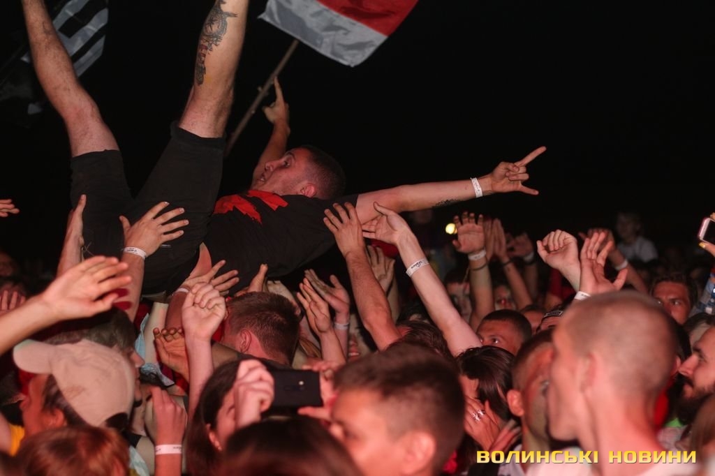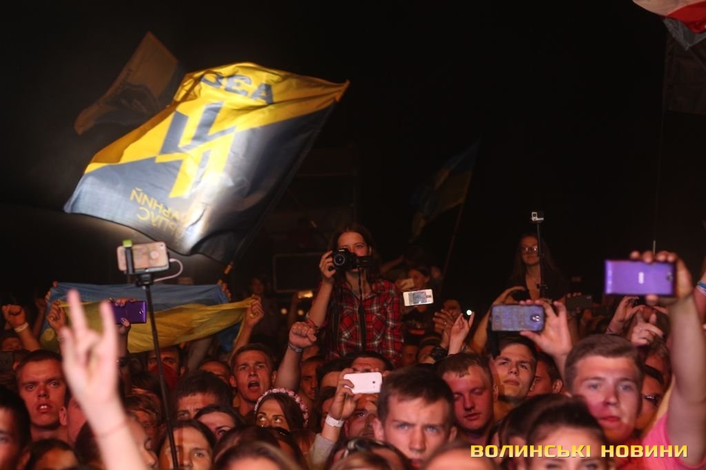 Під час виступу майоріли стяги добровольчих батальйонів, які боронять Україну від російського агресора на сході. Також раз по раз запалювали фаєри та іншу піротехніку. Не обійшлося і без крауд-серфінгу – людей піднімали, і натовп на руках «передавав» їх до сцени.