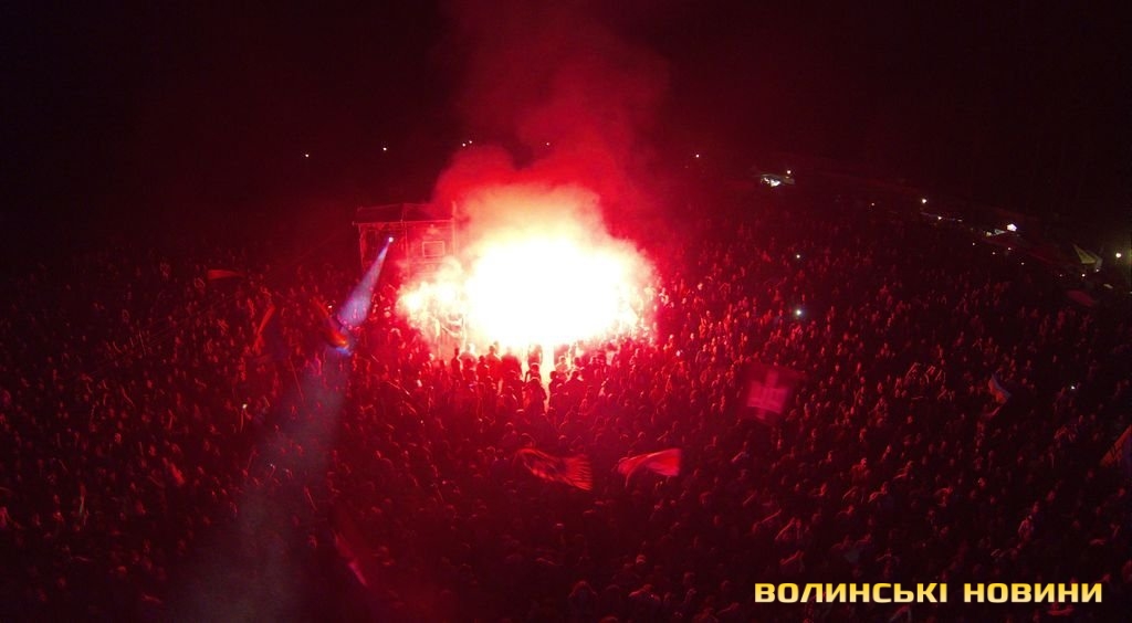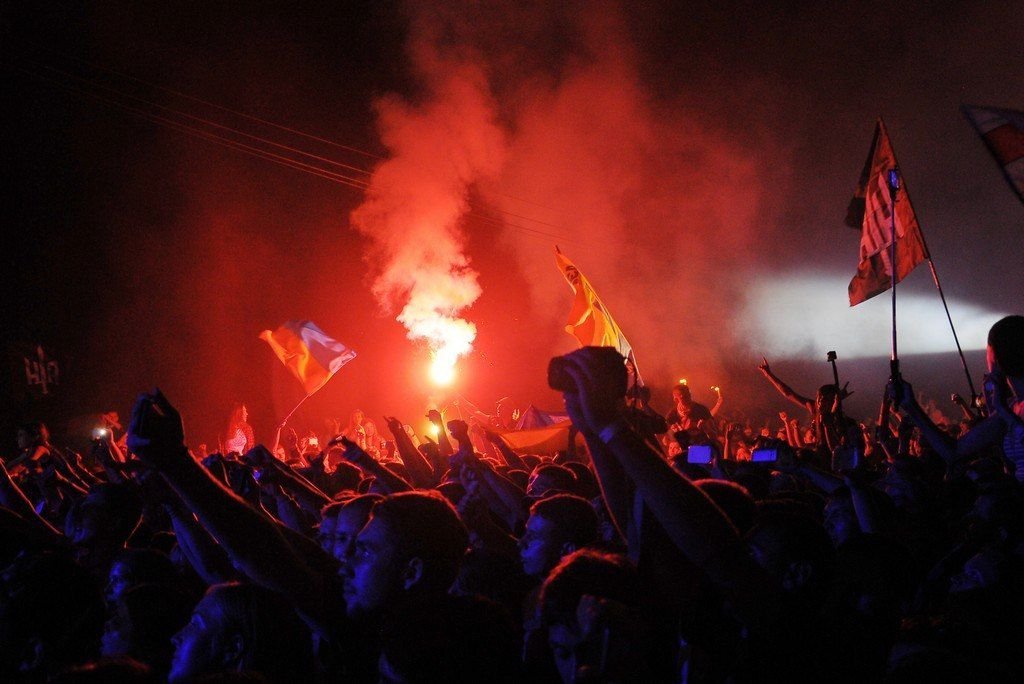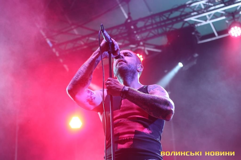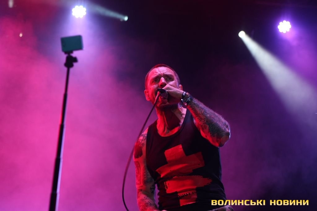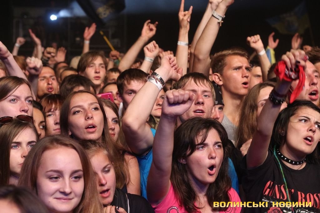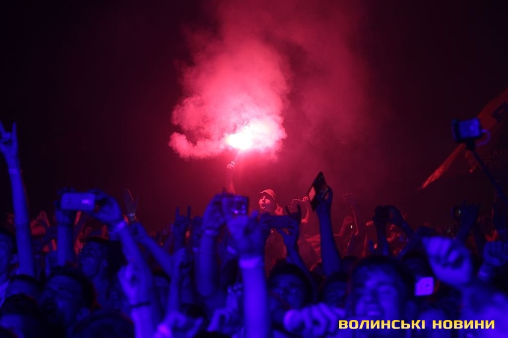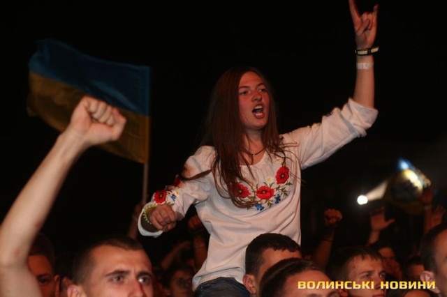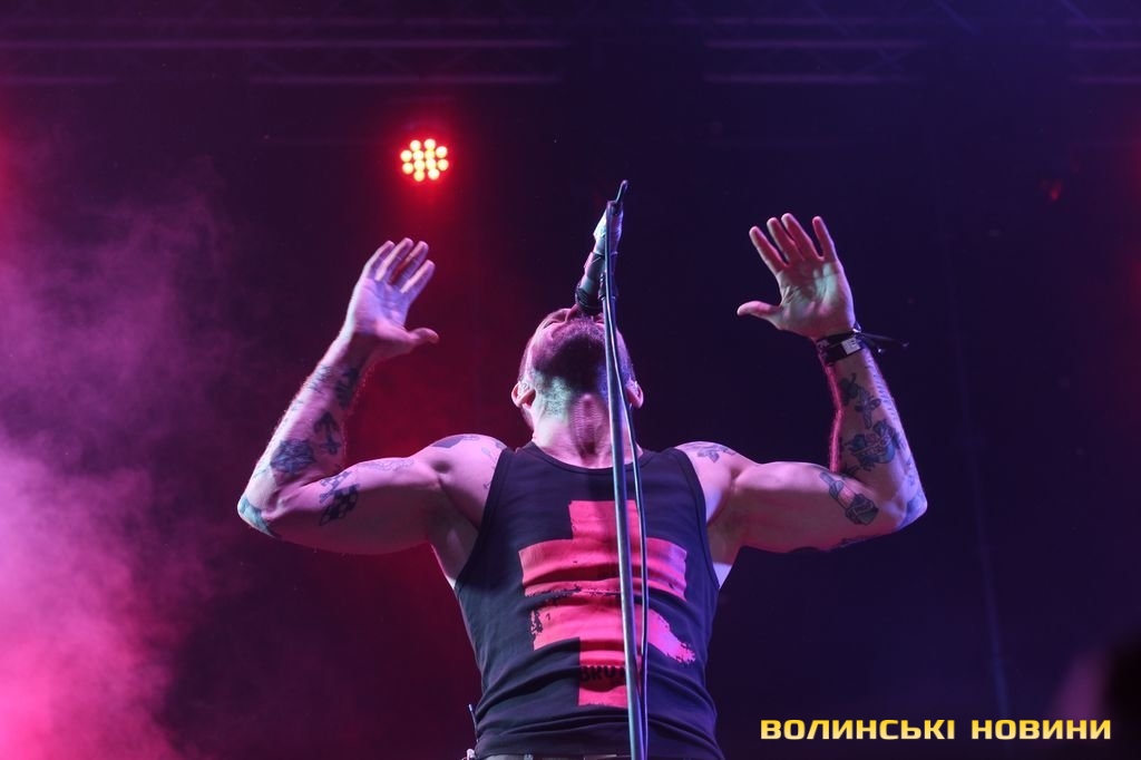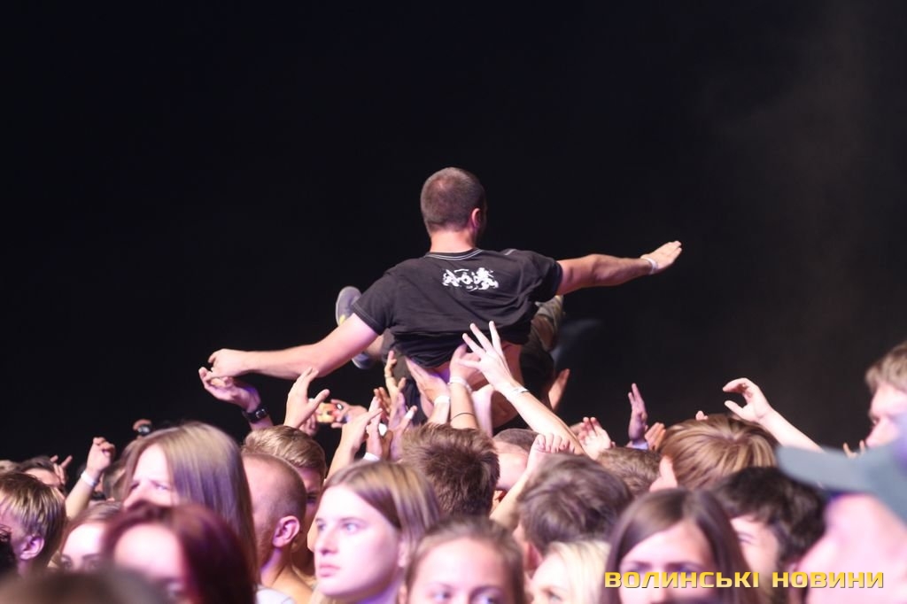 Під час виступу майоріли стяги добровольчих батальйонів, які боронять Україну від російського агресора на сході. Також раз по раз запалювали фаєри та іншу піротехніку. Не обійшлося і без крауд-серфінгу – людей піднімали, і натовп на руках «передавав» їх до сцени.