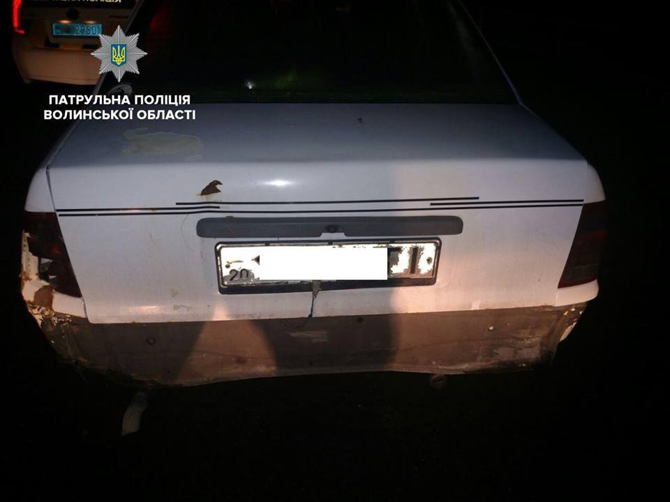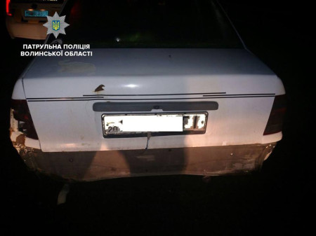 Уночі, 31 січня, екіпаж патрульних зупинив на вулиці Шопена у Луцьку Opel Kadett: автомобіль рухався без заднього бампера.