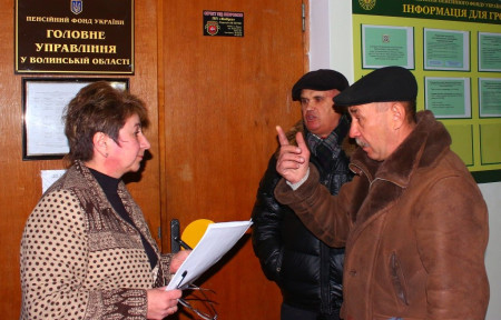 Так, військовий пенсіонер Петро Прач розповів, що служив в авіації, відсудив пенсію у розмірі 3612 гривень, але вчора отримав суму, на 800 гривень меншу. Враховуючи, що 2800 гривень він змушений сплачувати щомісяця за комунальні послуги, від пенсії лишається жалюгідна сума. Для того, щоб з’ясувати це питання, він звернувся до керівництва ГУ Пенсійного фонду в області. Інший представник колишніх військовослужбовців нарікав, що, прослуживши 21 рік, має пенсію трохи більшу за 1600 гривень.