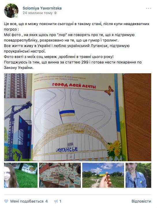 Відповідні дописи з’явилися на її сторінці в соцмережах, - пише ВАР і публікує скріншот її сторніки.