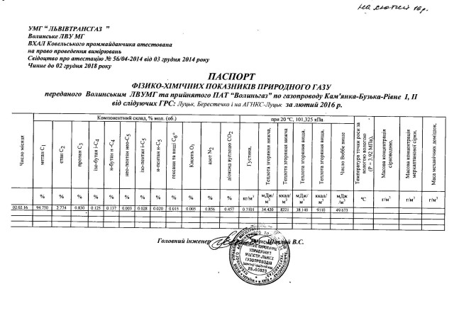 Як ідеться в повідомленні ПАТ «Волиньгаз», лабораторні дані аналізу газу, який відбирають на газорозподільних станціях Волині, від 2 лютого 2016 року, показують, що природний газ, що подається волинянам відповідає нормам ГОСТу і перевищує мінімально допустимий показник калорійності.