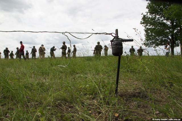 На полігоні сьогодні, 13 червня, армійське життя било ключем: лунали постріли, розривалися гранати, на наші блок-пости нападали, на щастя, лише уявні сепаратисти, хоча відбувалося й справжнє силове протистояння. Інструктори зі стажем роботи у "гарячих точках" ділилися секретами із підлеглими, розповідали солдатські бувальщини та робили "наганяй" за повільне засвоєння прописних істин.