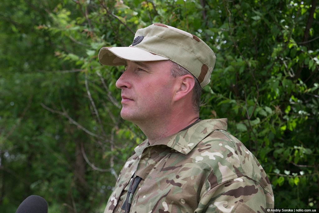 Як виявилося, командир батальйону Сергій Козак саме сьогодні святкує своє 40-ліття. Проте у військових клопотах йому було не до пишної риторики. Часом переривався, аби відповісти на телефонний дзвінок друзів. Військовий на пенсії, він пригадує чимало з попереднього досвіду. Каже, що сьогодні особливо нікого не боїться і говорить те, що думає. За званням не гониться. Підлеглі його поважають і в чині майора.