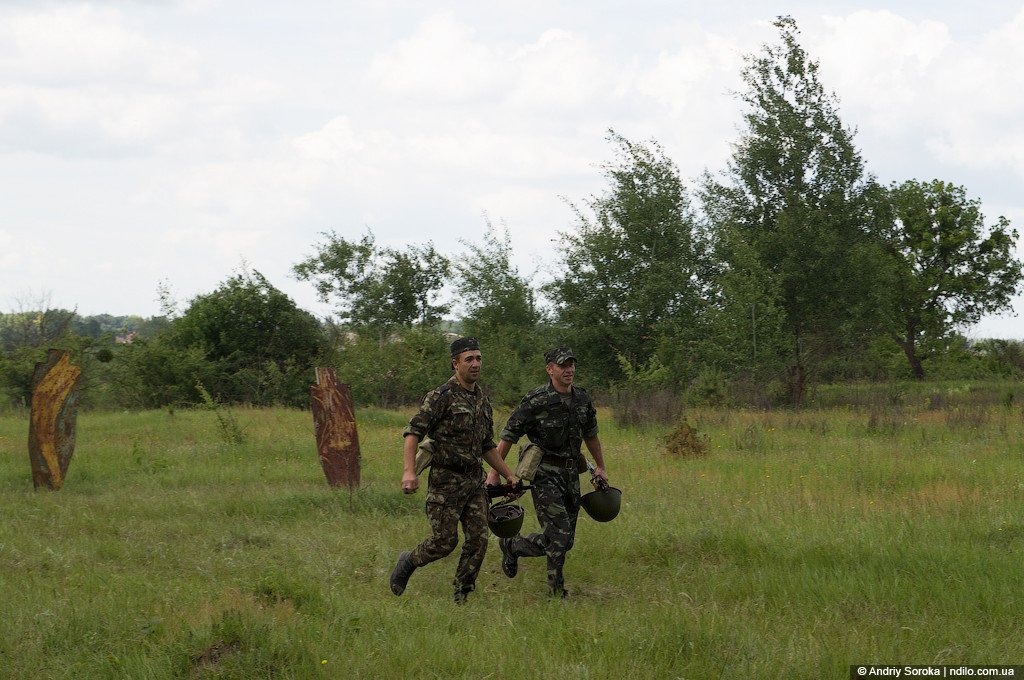 На полігоні сьогодні, 13 червня, армійське життя било ключем: лунали постріли, розривалися гранати, на наші блок-пости нападали, на щастя, лише уявні сепаратисти, хоча відбувалося й справжнє силове протистояння. Інструктори зі стажем роботи у "гарячих точках" ділилися секретами із підлеглими, розповідали солдатські бувальщини та робили "наганяй" за повільне засвоєння прописних істин.