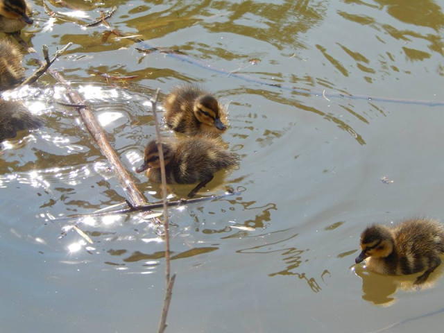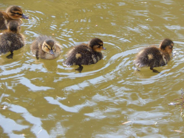 Перший «заплив» новонароджених каченят на водоймах Луцького зоопарку