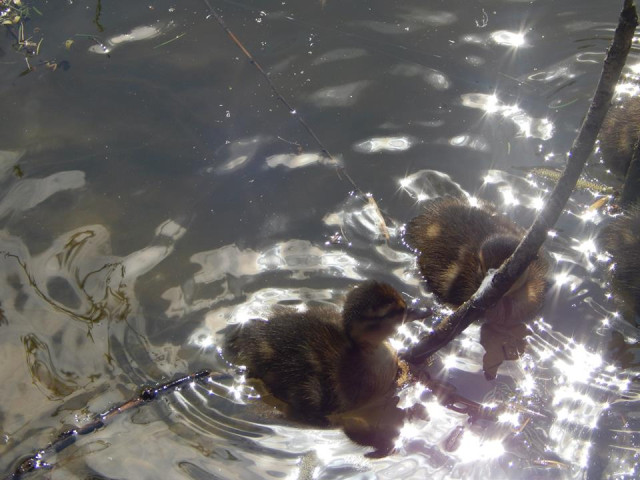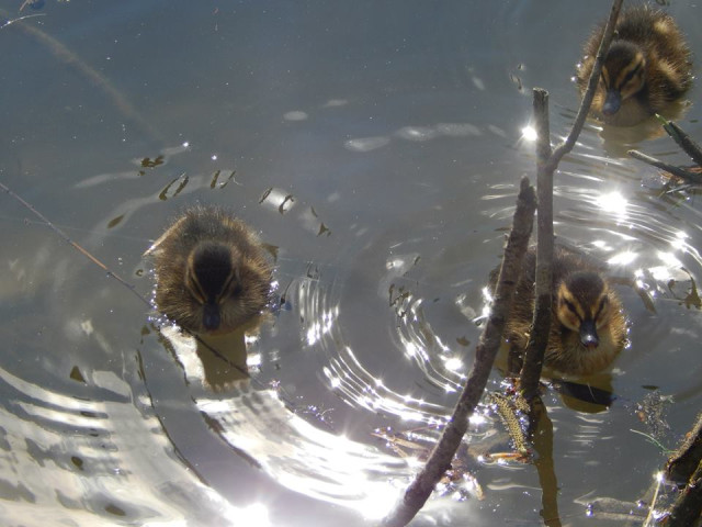 За першим "запливом" новонароджених каченят-крякв спостерігали працівники Луцького зоопарку. Очевидно, кажуть у звіринці, малюки народилися на одному з островів, що посеред водойми. Цього разу одна мама-качка "висиділа" аж 12-ть каченят. Маленькі від мами - ні на крок і на воді, і на суші. Про це йдеться в групі зоопарку в мережі.