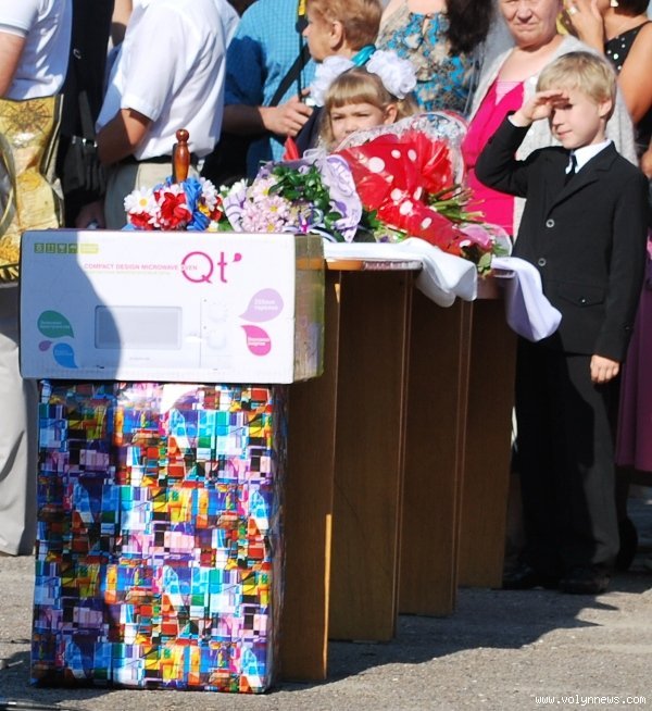 Присутній на святі першого дзвоника у НВК №9-ліцей голова облдержадміністрації Борис Клімчук подарував навчальному закладу обладнання для кухні – мікрохвильову піч, кавоварку, посуд.