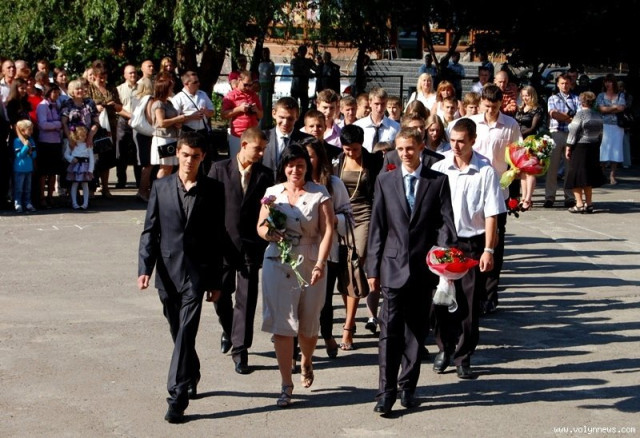 Сьогодні на екранах телевізорів будуть мерехтіти банти першокласниць, букети гладіолусів, троянд і айстр, а мої колеги (я – журналіст) будуть зачіпати іншу сторону освіти – економічну. Вона, поза сумнівами і запереченнями, дорога. Поруч розмовляли дві мами про те, як дорого зібрати першачка в школу. І це справді так. Але «витратна» сторона Дня знань не заважає йому залишатись святом в головах лучан, волинян і усіх українців. Проте на цей рахунок є й інші думки. Фізрук цього «виховного комплексу», метушачись з портативною камерою на шкільному майдані, відганяв мам і тат, дідусів і бабусь від лінії, відведеної крейдою, яку не можна переступати. «Ніззя!!!» - є таке правило. Він грубо наголошував, що свято не для них, а для дітей. Хай Бог прощає фізкультурнику такий маленький гріх, і автор цих рядків спортсменам завжди прощав – це ж не історики і не філологи! А на запитання міському голові: «Чому ви сьогодні вибрали саме 26-ту школу?», я почув відповідь: «В усіх школах на свято я бував, а в цій не був. А в Луцьку, до речі, усі школи хороші». Це при тому, що голова дуже скупий на похвали. Було приємно таке почути. І вчителі усі стояли красиві і молоді! Це завдяки їм ми ще не забули, що таке тангенс і котангенс.