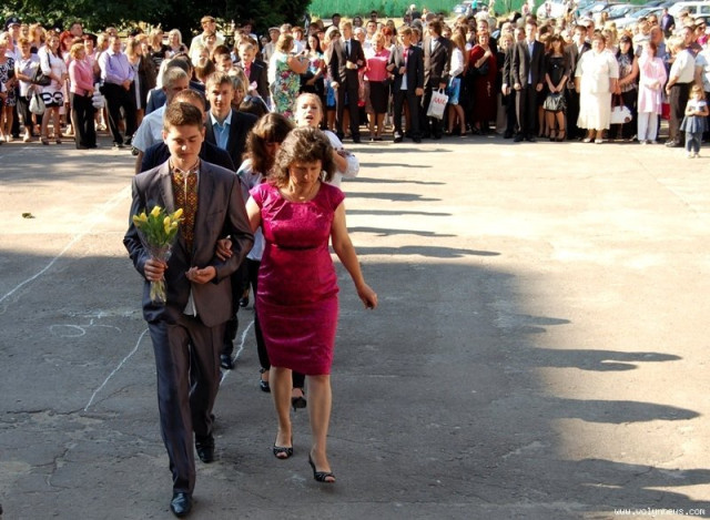 Я сьогодні був у луцькій школі №26. На фасаді в ній написано: «Навчально-виховний комплекс». А на моїй було написано «середня загальноосвітня…». Та я не про це – вивіска не міняє суті: Школа є Школа, вона і в Африці - Школа. А поруч стояла молода вродлива жінка і милувалась собою, як милуються квітами чи кольоровими метеликами - зосереджено і здивовано. На запитання «чи пам’ятаєте ви свій перший клас?», вона якось трохи зухвало відповіла: «А што мнє пєрвій клас? Прошло с тєх пор шестнадцать лет і я жіву совсєм другой жізнью». Яким життям живе ця дама зі сміливим декольте на грудях, допитуватись, зважаючи на її зневажливий погляд, я не насмілився. Чомусь мені здалося, що духовна сторона життя-буття цієї серйозної жінки не вельми різнобарвна. А, можливо, школа їй була в тяжбу?