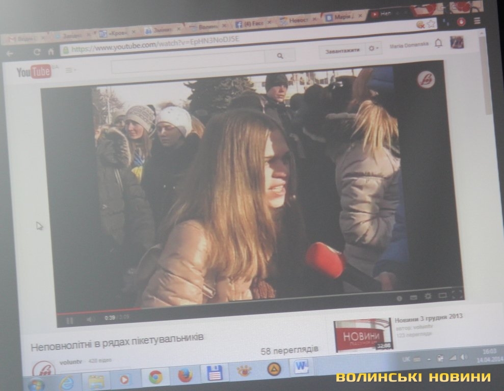 Марія Доманська розповіла, що ще на початку подій Євромайдану у Луцьку на телебаченні з’явився сюжет про те, що у мітингу беруть участь неповнолітні, при цьому навівши коментар начальника управління освіти, знехтувавши коментарем батьків. У репортажі про зірваний концерт, присвячений Дню Соборності, більшу частину ефірного часу віддали екс-голові ОДА Борису Клімчуку. У сюжеті про представлення на посаді голови облдержадміністрації Олександра Башкаленка йому присвятили значно більше часу, ніж мітингу, який відбувався під стінами ОДА. Також не була висвітлена інформація про те, як активісти їздили колядувати додому до Бориса Клімчука, про акцію «Бізнес на крові», екскурсію лісовим «Межигір’ям» Богдана Колісника тощо.