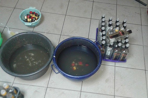 "Підприємство" знаходилось в одному з населених пунктів Луцького району. У гаражному приміщенні приватного будинку виробляли "ліву" горілку кустарним способом. На перший погляд пляшки нічим не відрізнялись від "оригіналу". Однак запах рідини викликав великий сумнів.
