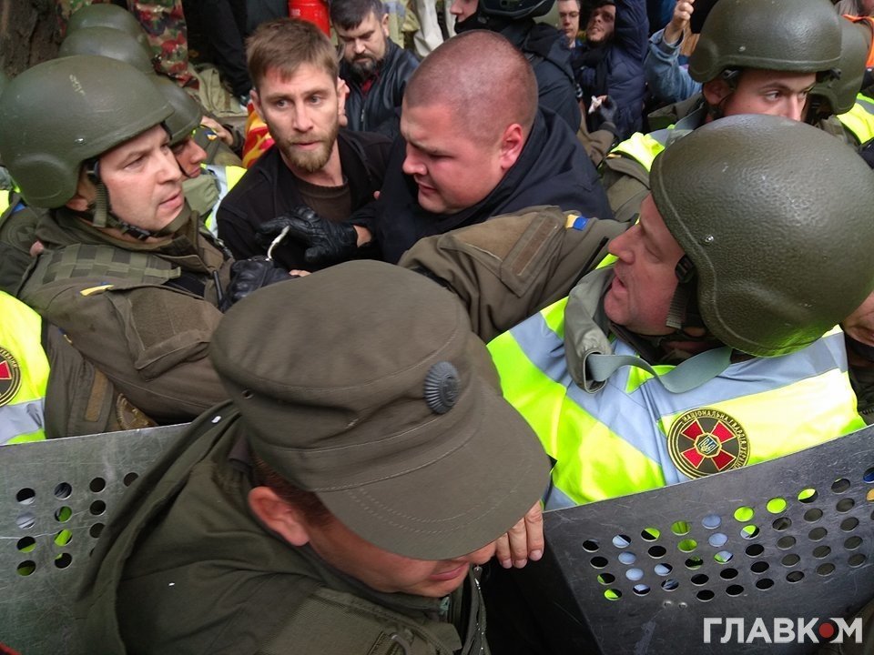 Нацгвардійці застосували газові балончики після спроб активістів прорвати кордон силовиків.